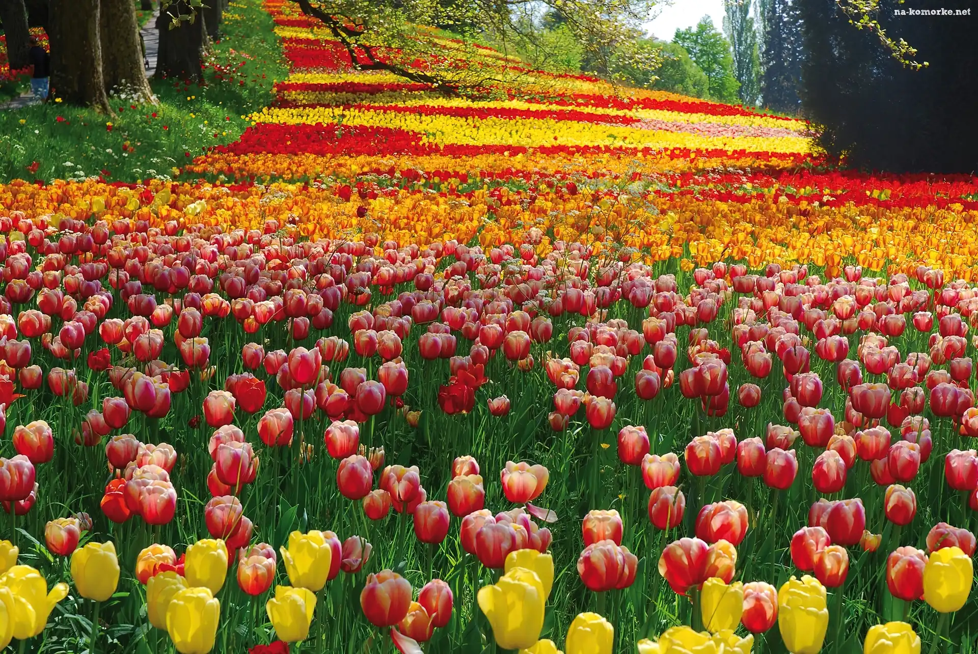 Kolorowe, Alejka, Tulipany, Drzewa na Komórkę