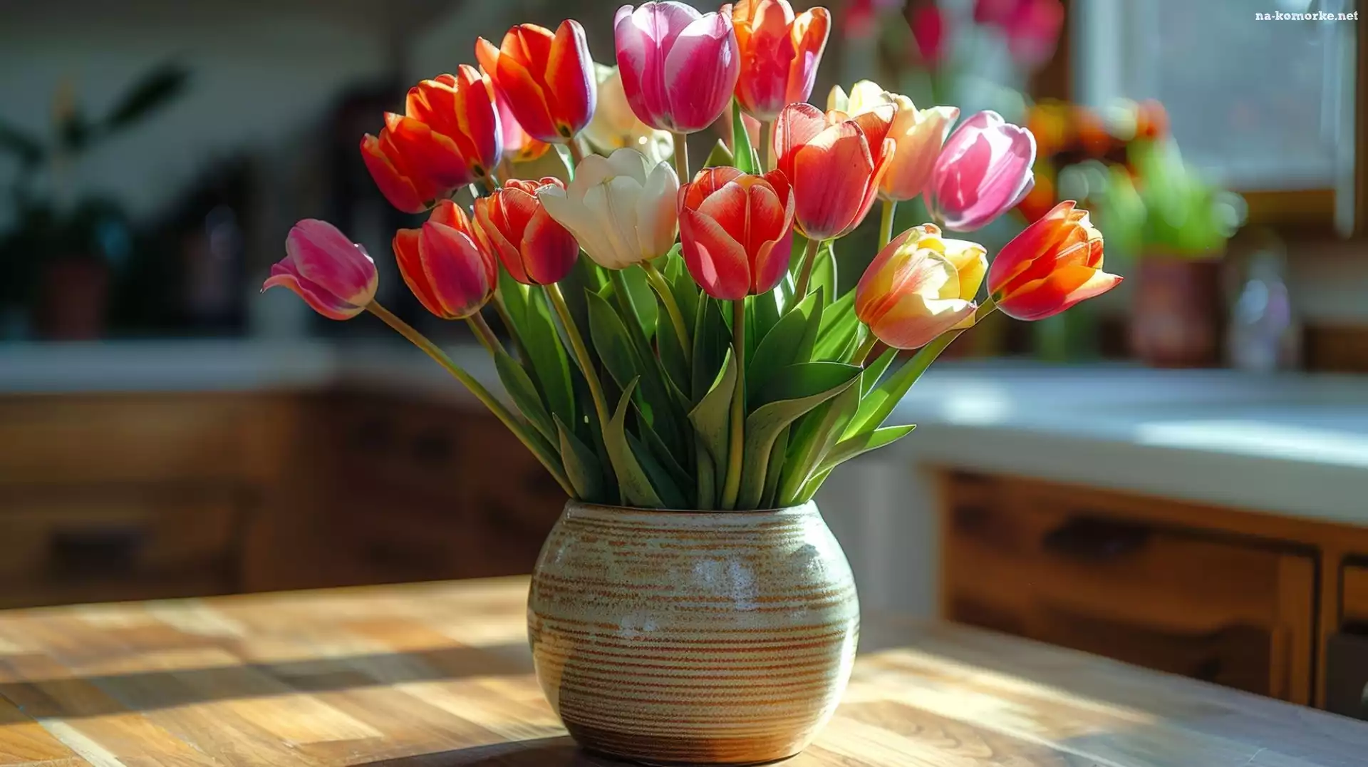 Kwiaty, Kolorowe, Wazon, Tulipany, Stół na Komórkę
