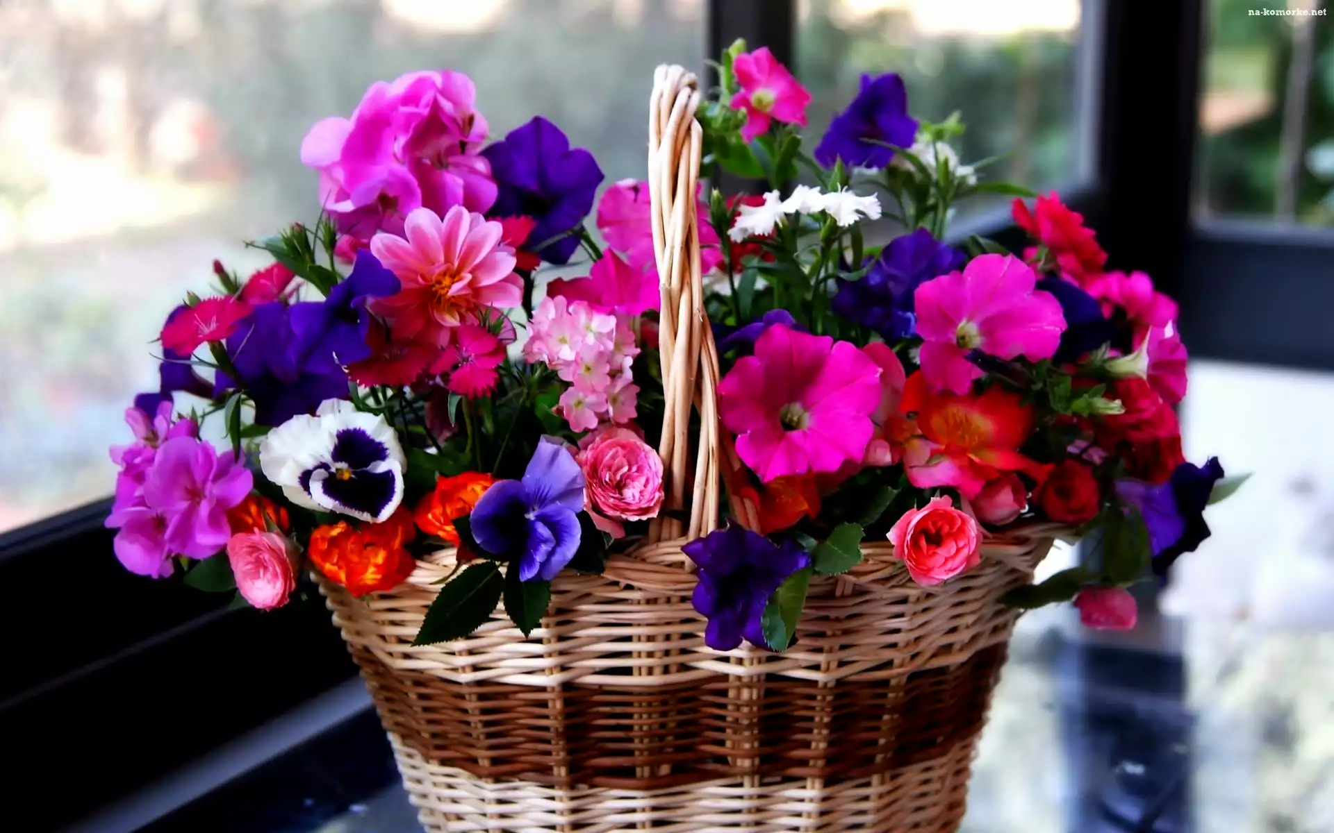 Kosz, Kolorowych, Kwiatów na Komórkę