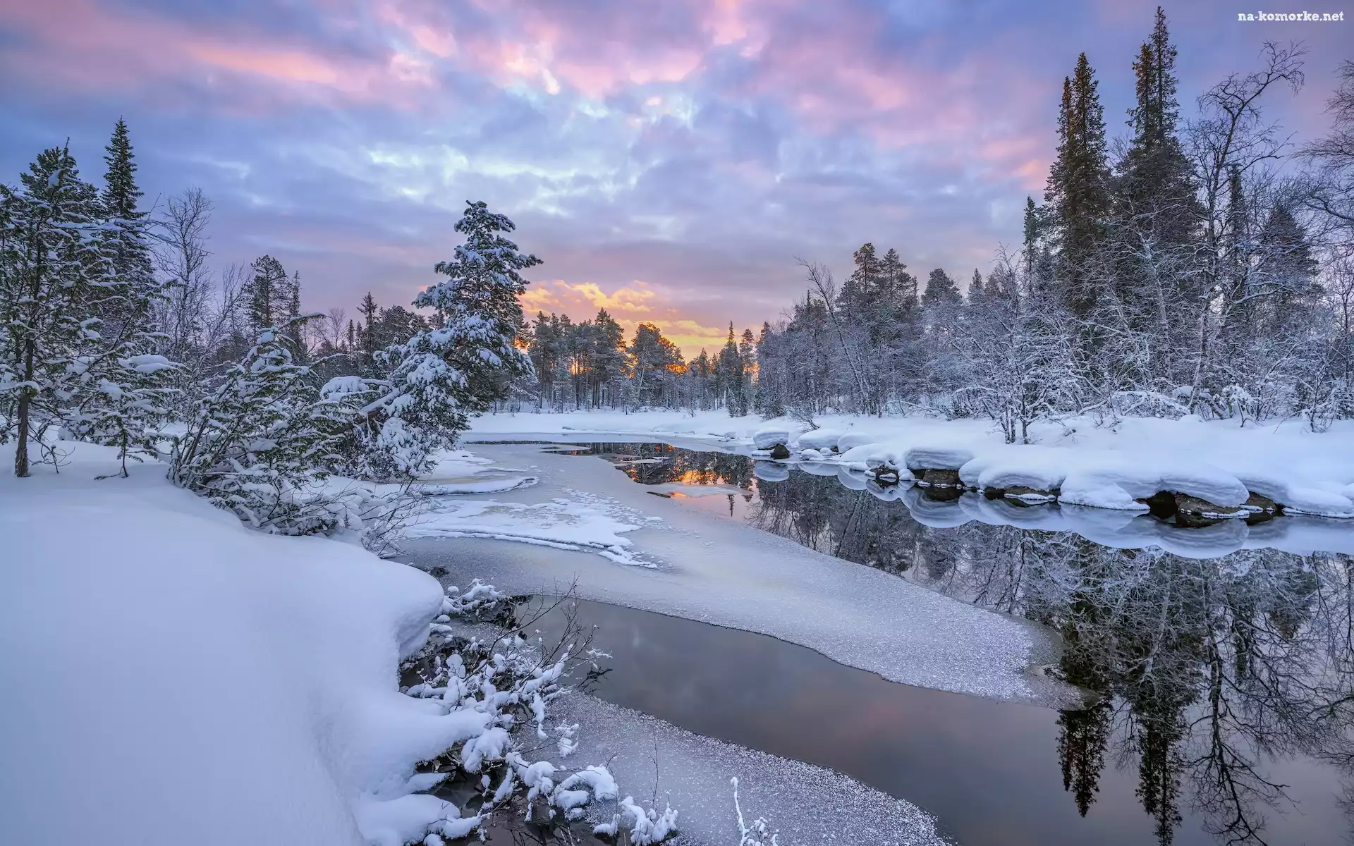 Drzewa, Ośnieżone, Rosja, Las, Zima, Jezioro, Półwysep Kolski na Komórkę
