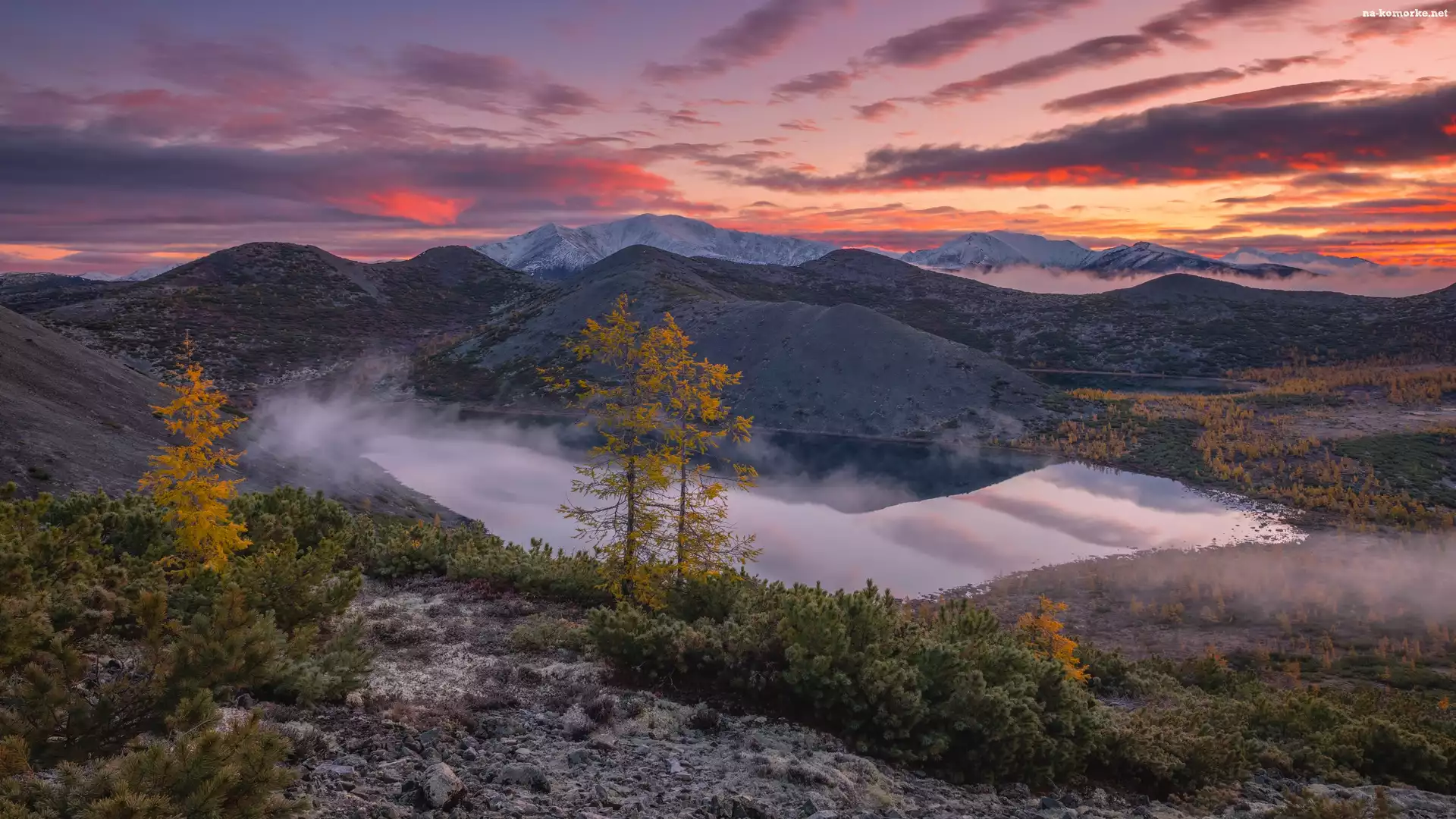 Mgła, Rosja, Drzewa, Jezioro Mechta, Góry Kołymskie, Kołyma na Komórkę