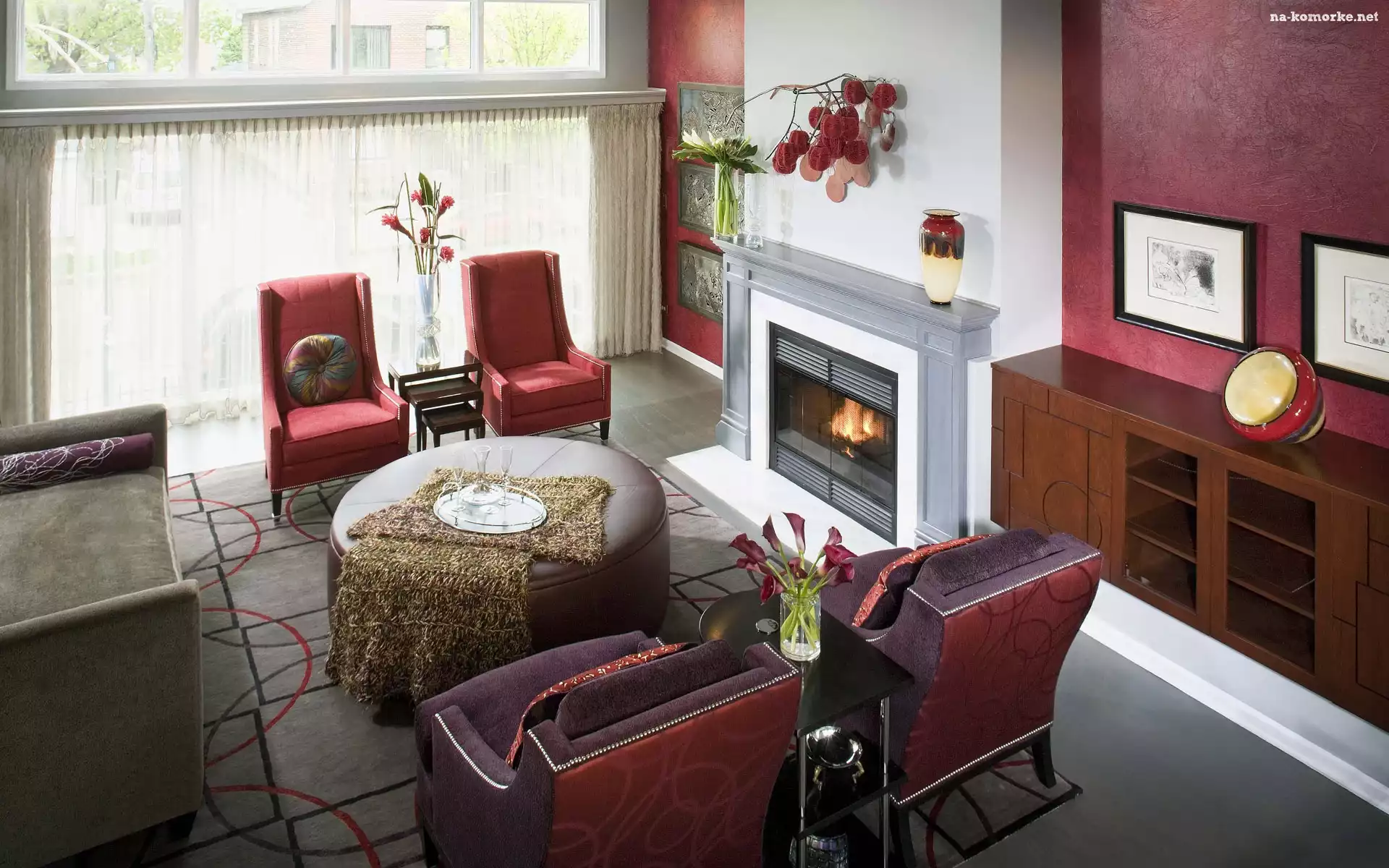 Kominek, Stolik, Pokój, Kwiaty, Fotele, Obrazy na Komórkę