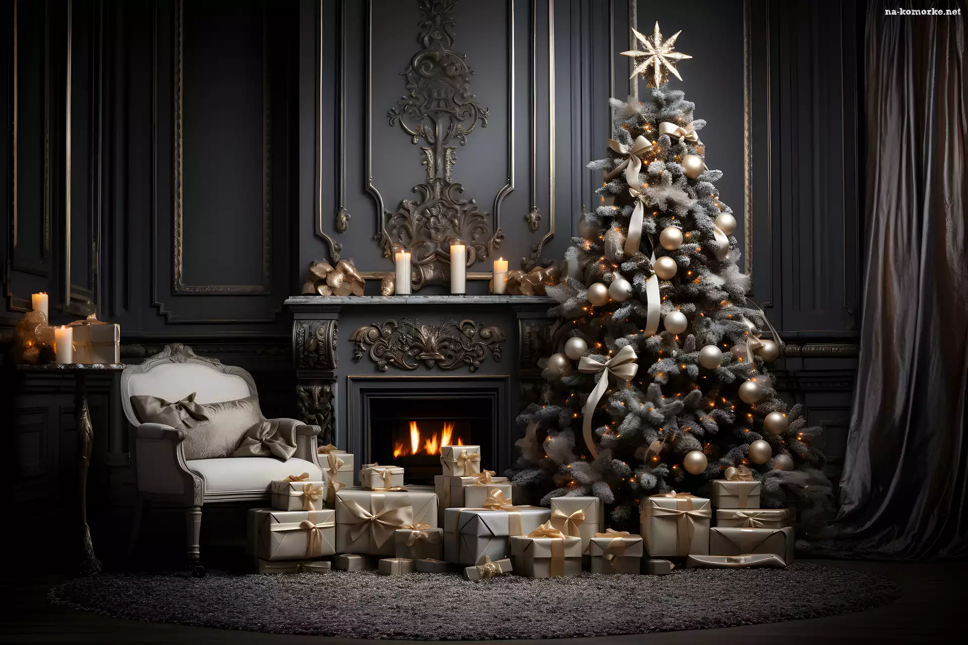 Boże Narodzenie, Prezenty, Kominek, Choinka, Świece na Komórkę