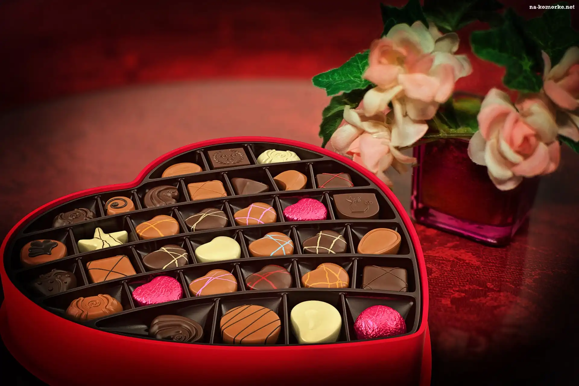 Kompozycja, Róże, Bombonierka, Pralinki na Komórkę
