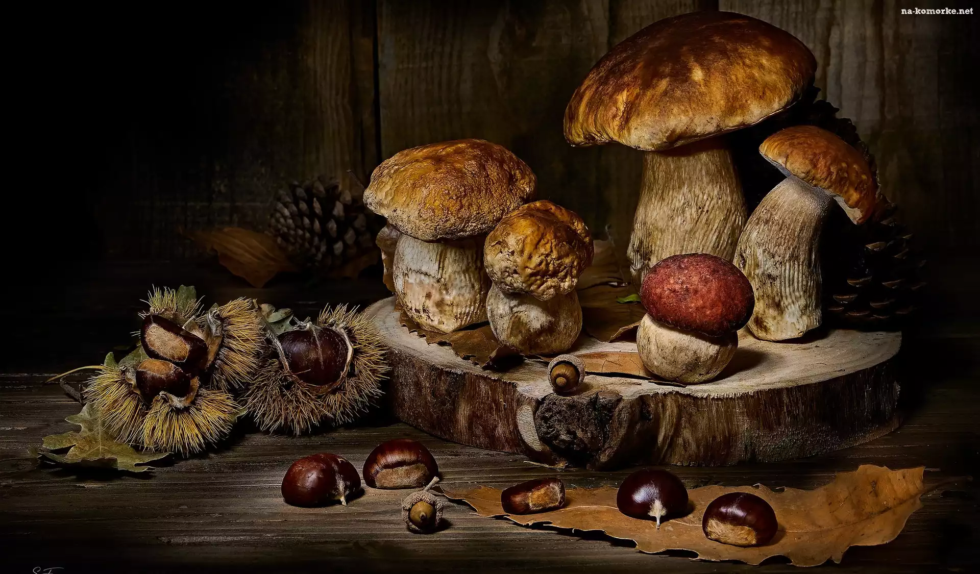 Kompozycja, Grzyby, Borowiki, Kasztany jadalne, Liście na Komórkę