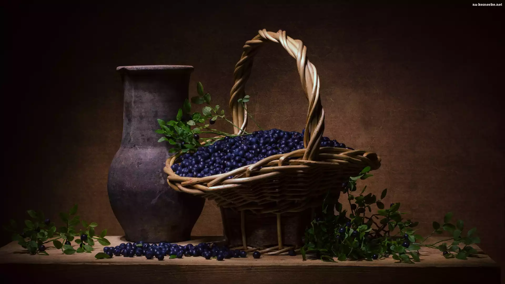 Kompozycja, Dzban, Czarne jagody, Koszyk na Komórkę
