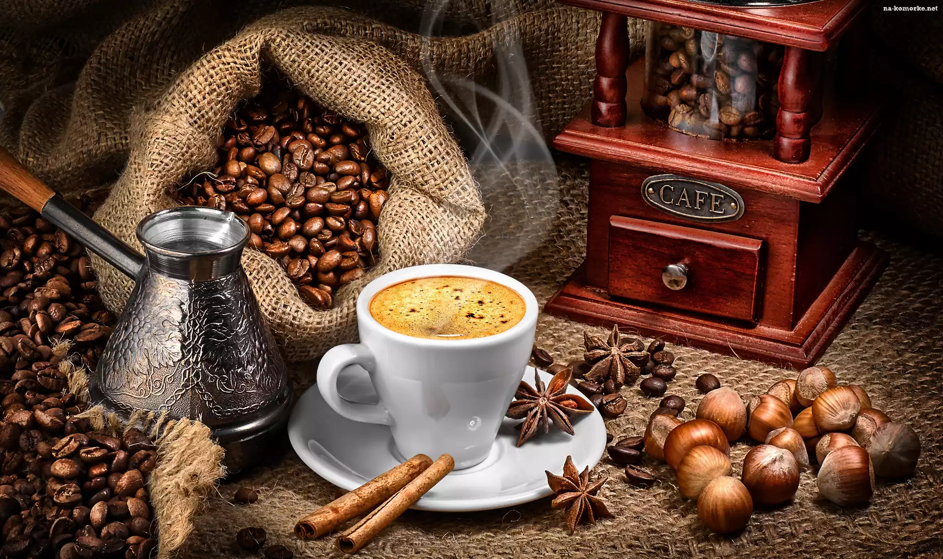 Kompozycja, Młynek, Kawa, Ziarna na Komórkę