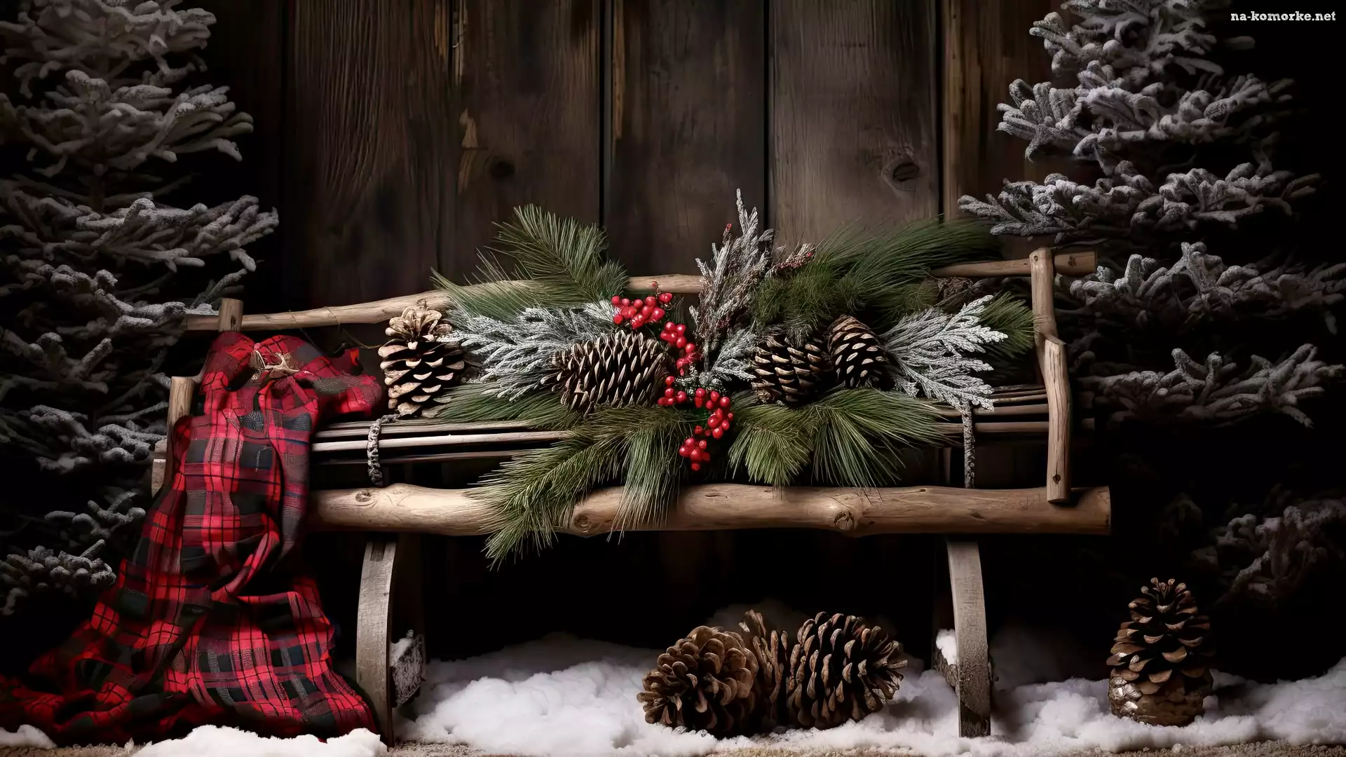 Jagody, Śnieg, Ławka, Kompozycja, Szyszki, Choinki, Koc na Komórkę