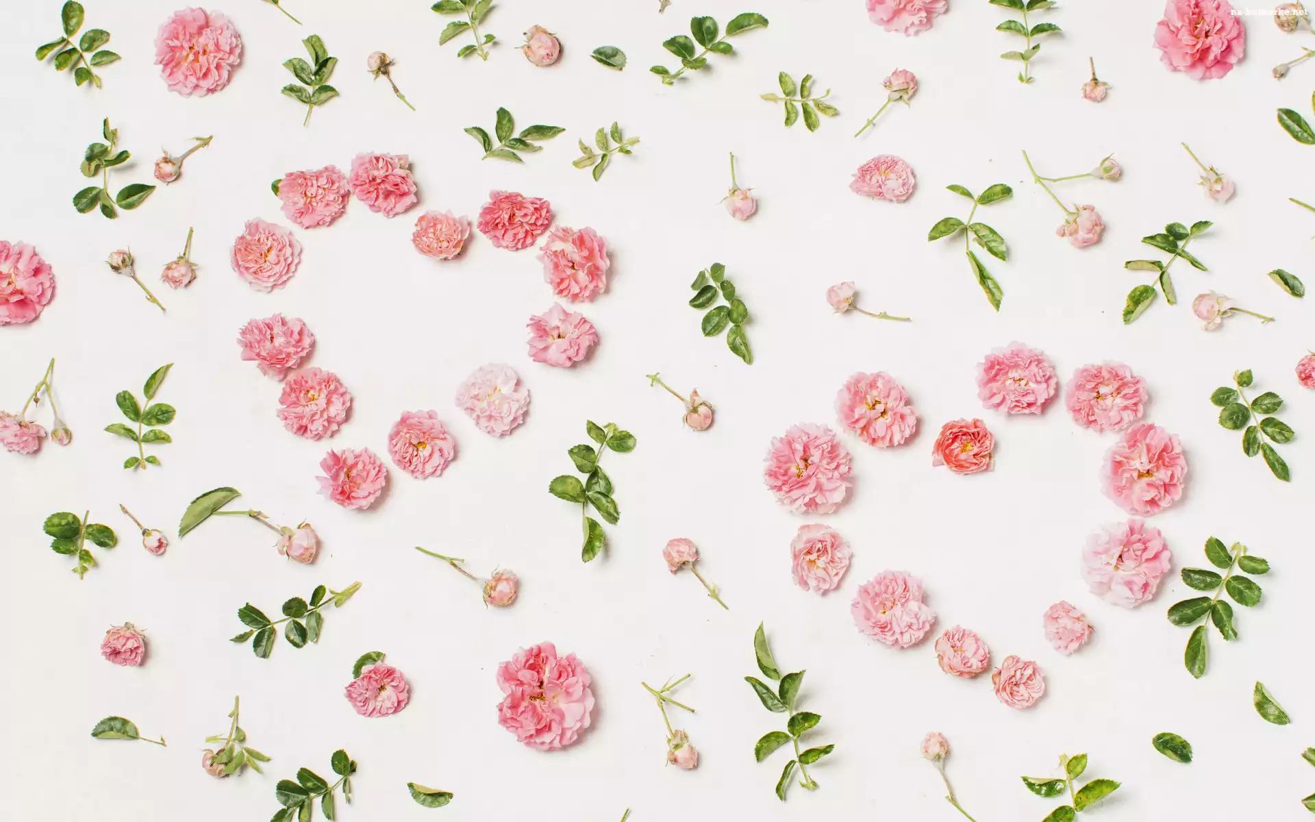 Kompozycja, Kwiaty, Różyczki, Listki, Serca na Komórkę