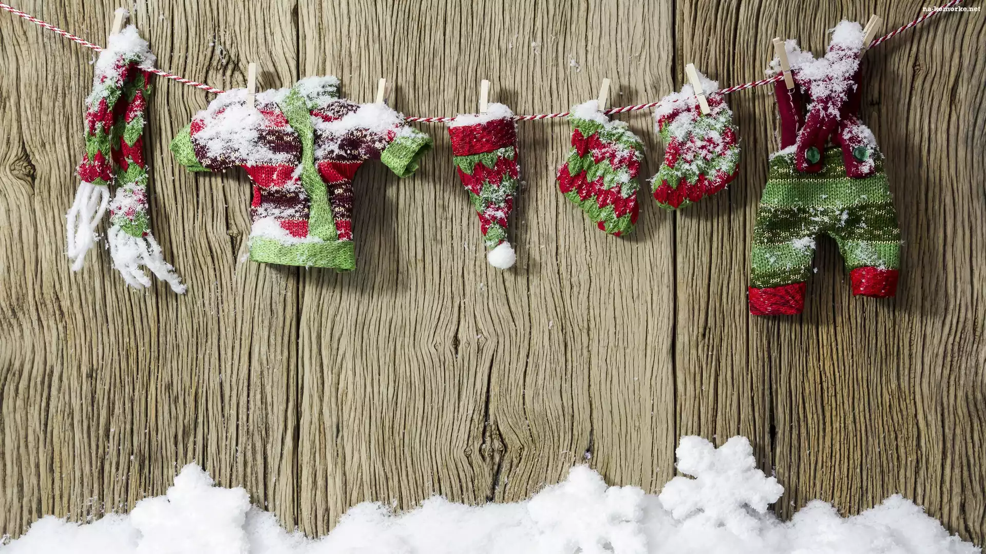 Kompozycja, Ubranka, Sznurek, Świąteczna, Śnieg, Dekoracja na Komórkę