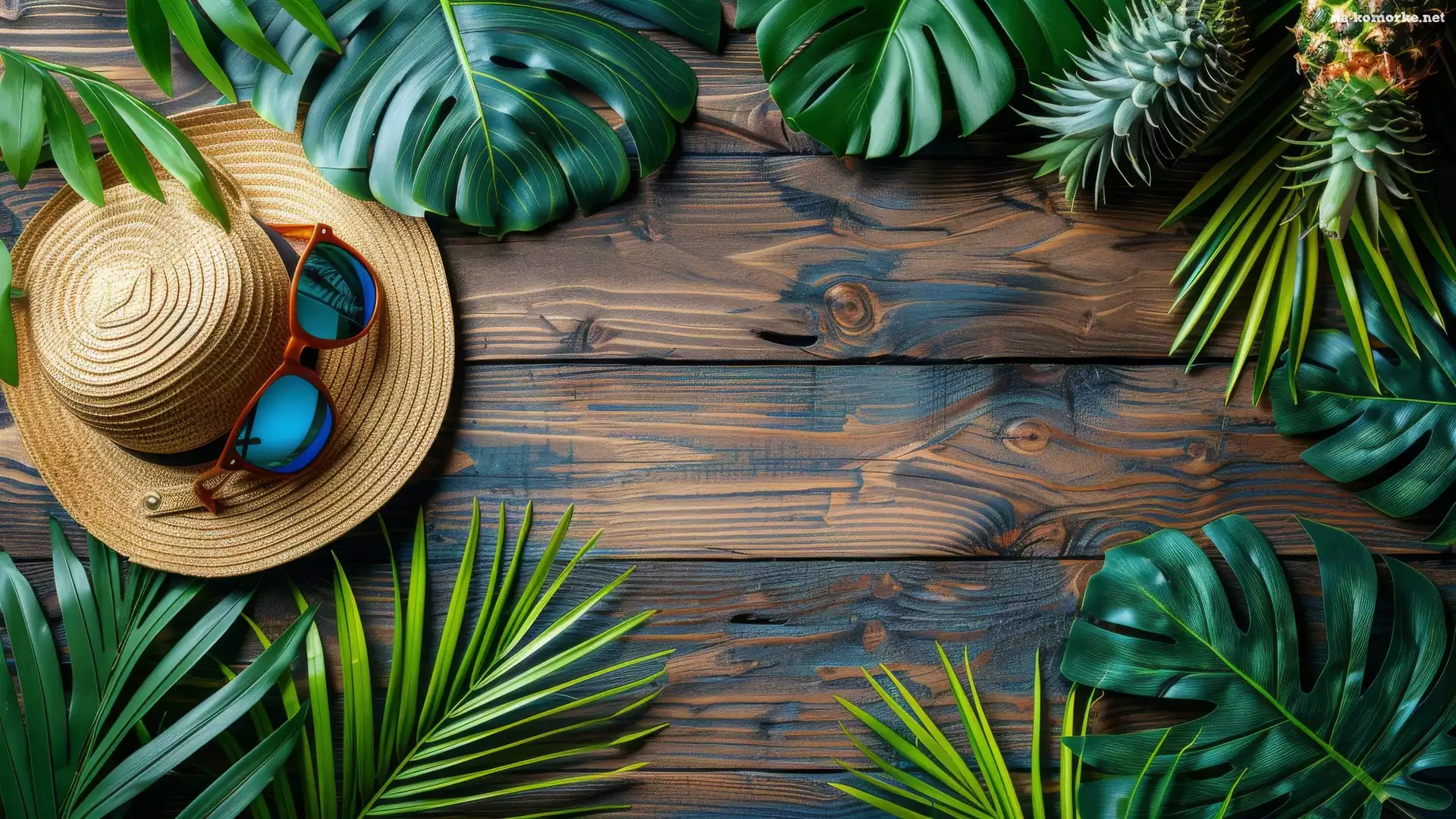 Deski, Kapelusz, Drewno, Kompozycja, Liście, Okulary na Komórkę