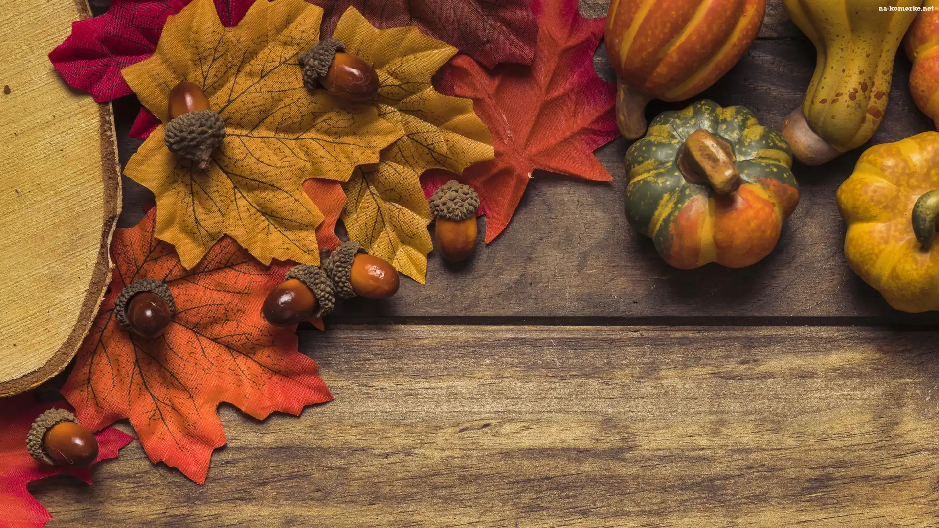Sztuczne, Kompozycja, Jesienna, Liście, Żołędzie, Dynie, Deski na Komórkę