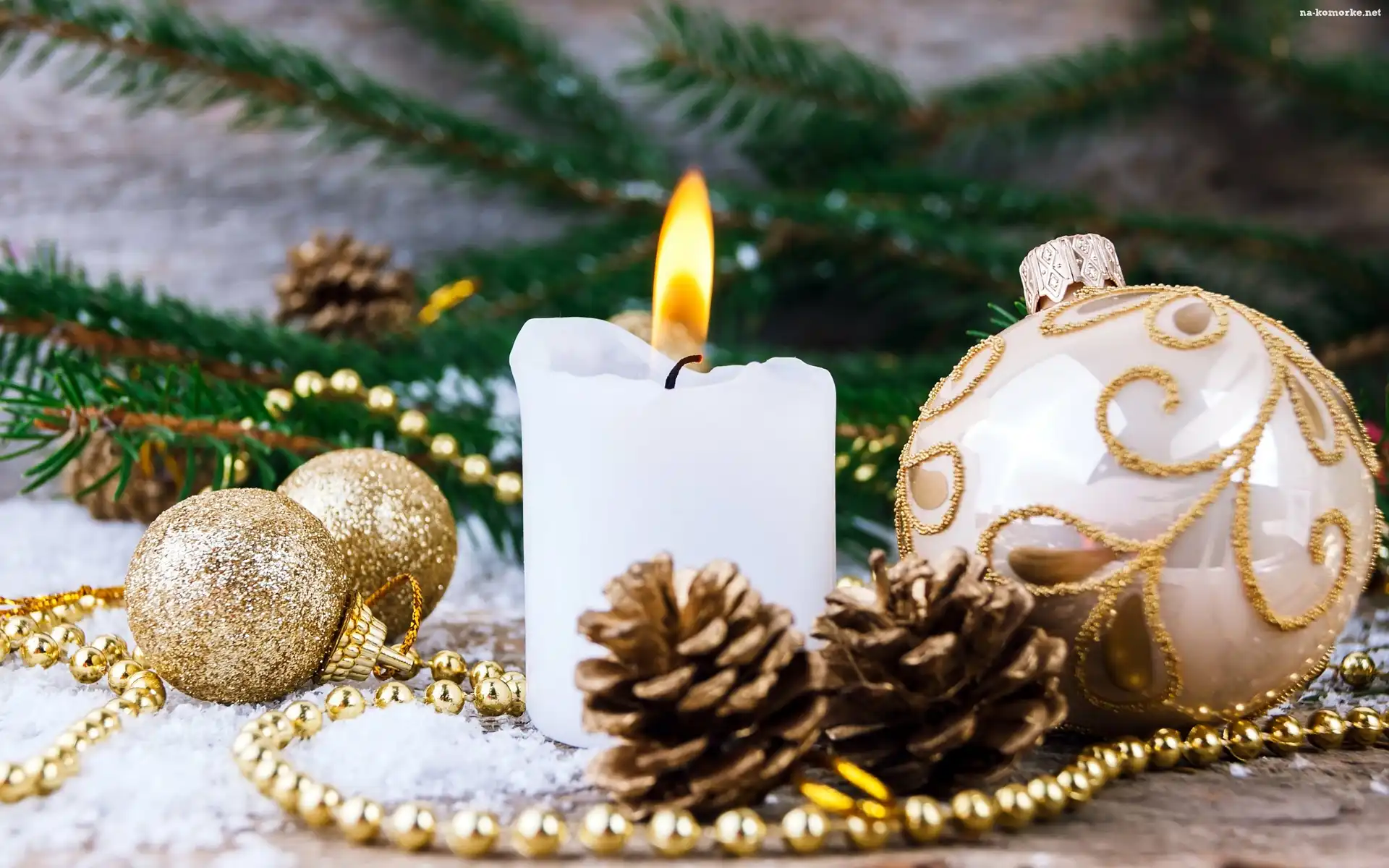 Kompozycja, Biała, Bombki, Stroik, Świeczka, Świąteczna na Komórkę