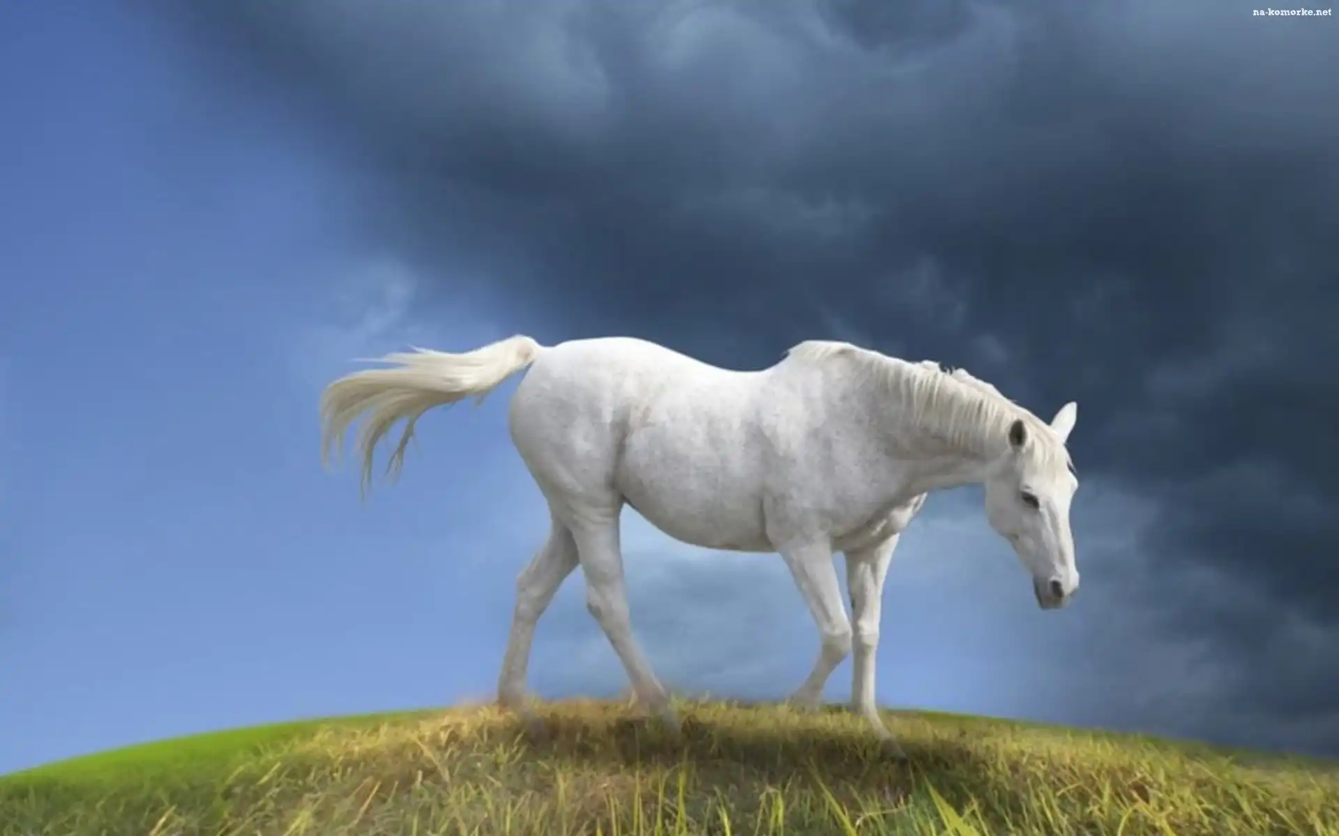 Biały, Koń, Chmury na Komórkę