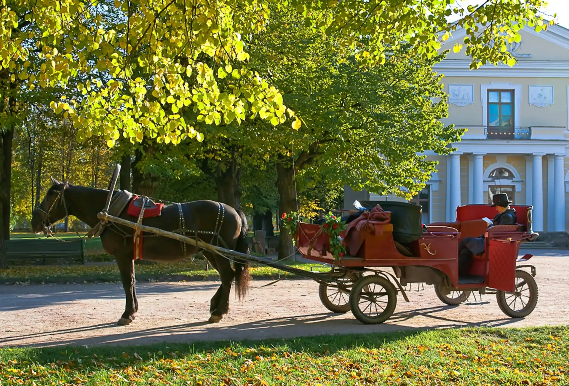 Koń, Dworek, Bryczka, Kobieta na Komórkę