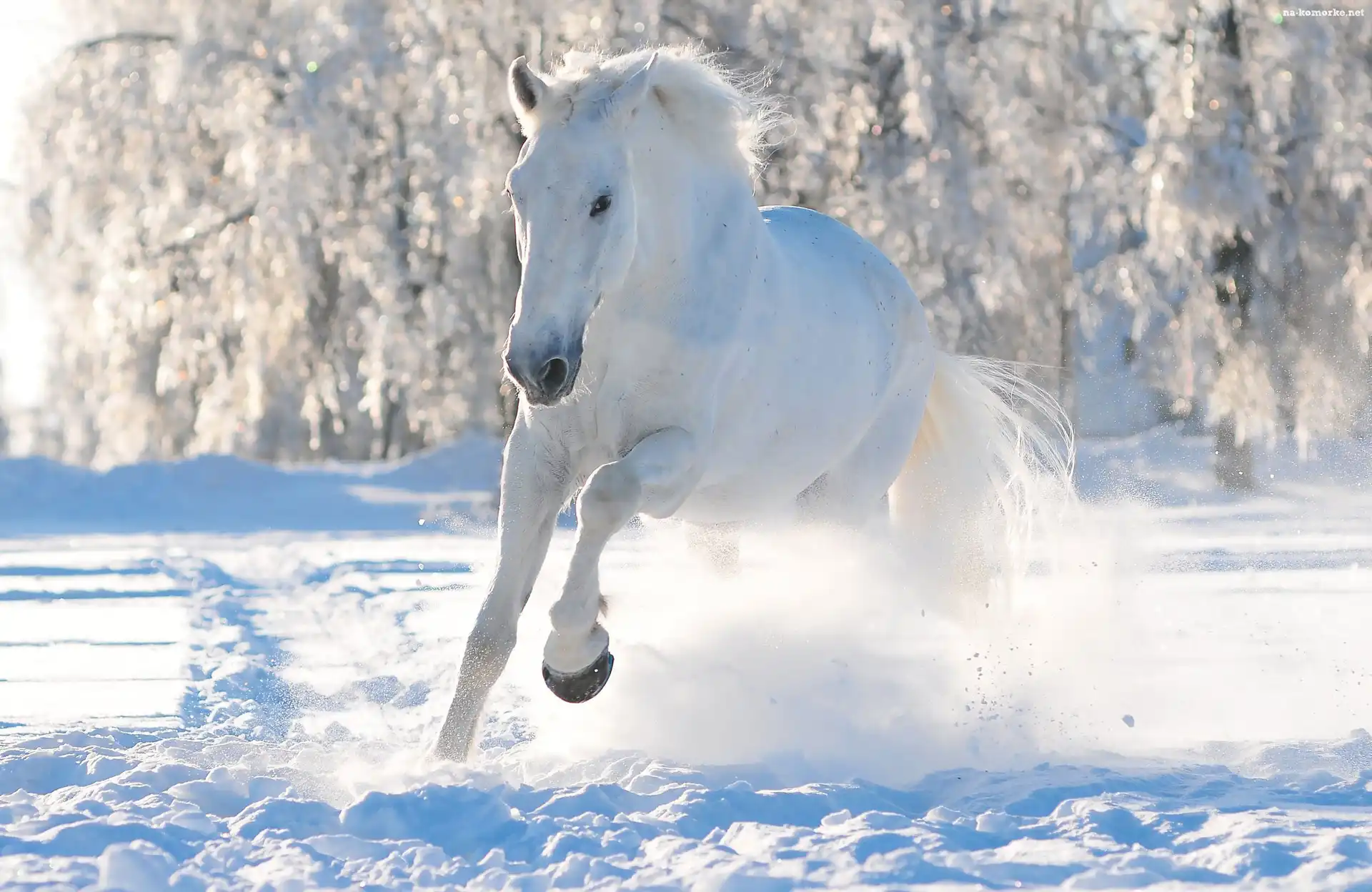 Koń, Śnieg, Zima, Las, Biały na Komórkę