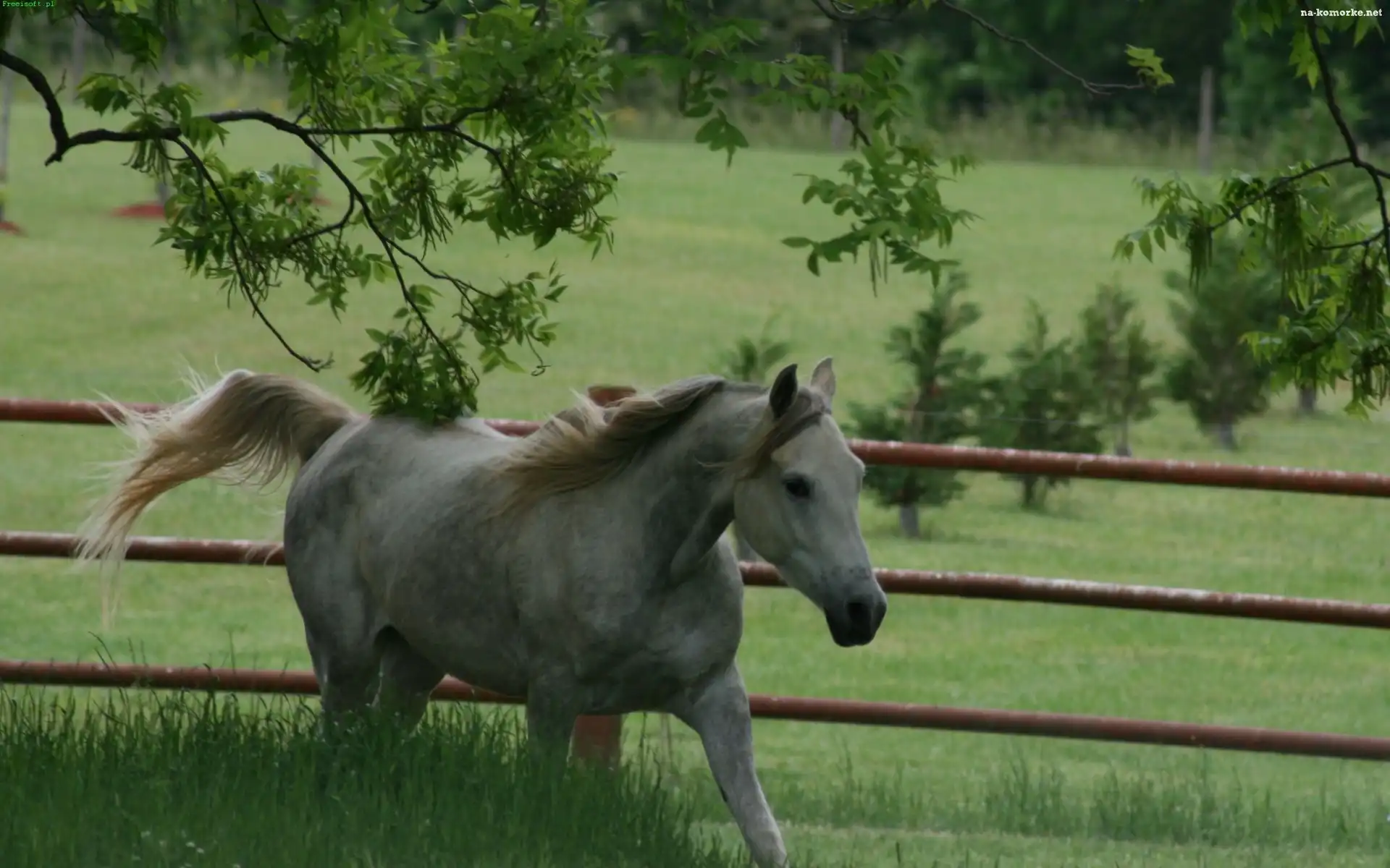 Koń, Trawa, Siwek, Zagroda na Komórkę