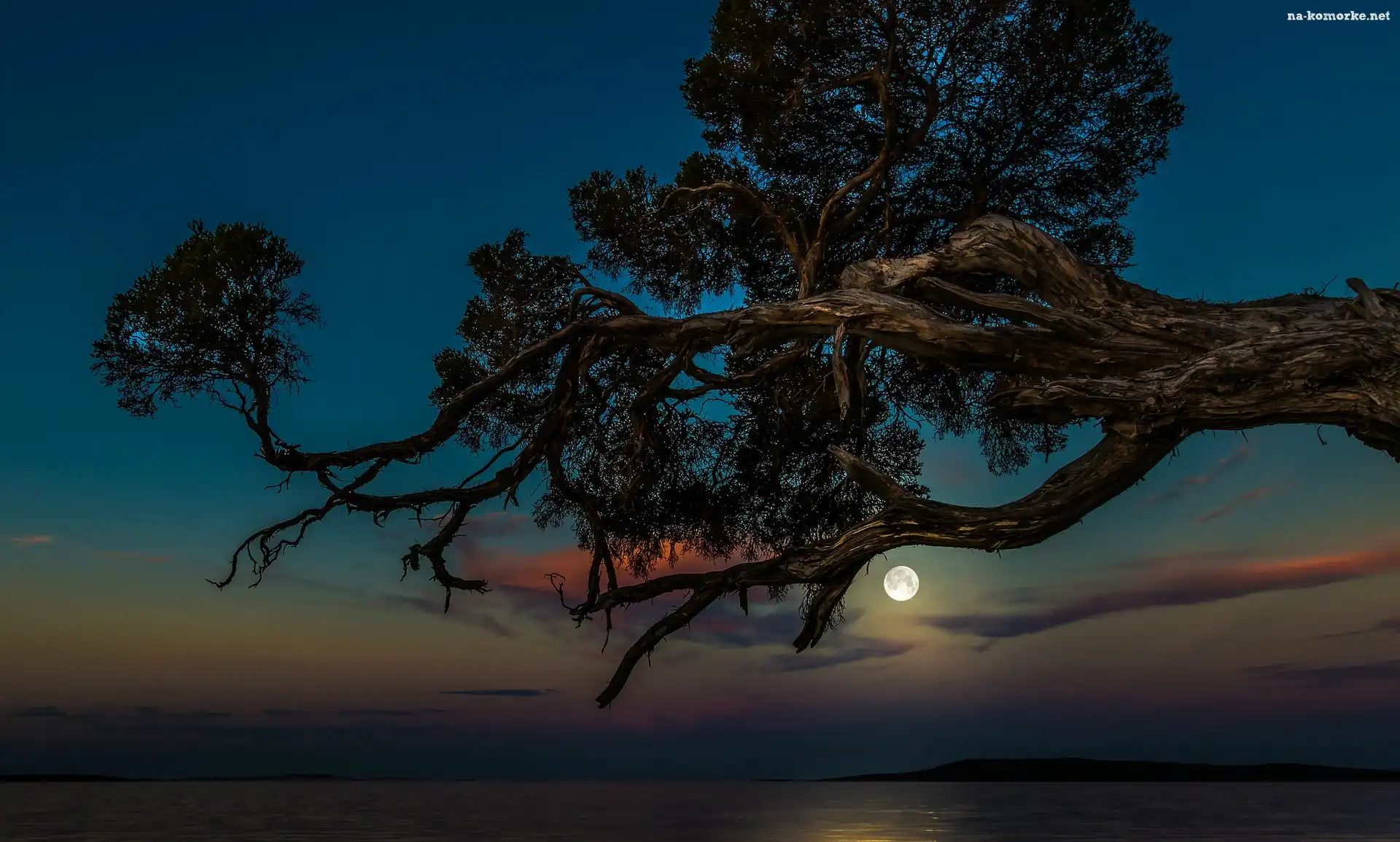 Konar, Księżyc, Drzewa, Niebo na Komórkę
