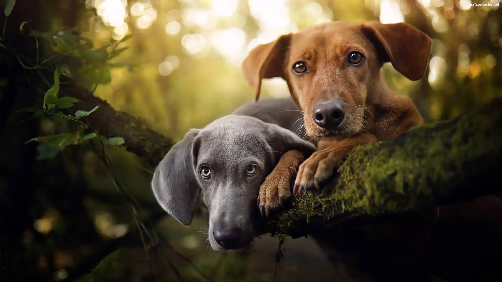 Dwa, Konar, Las, Psy, Wyżeł weimarski, Nierasowy, Drzewo na Komórkę
