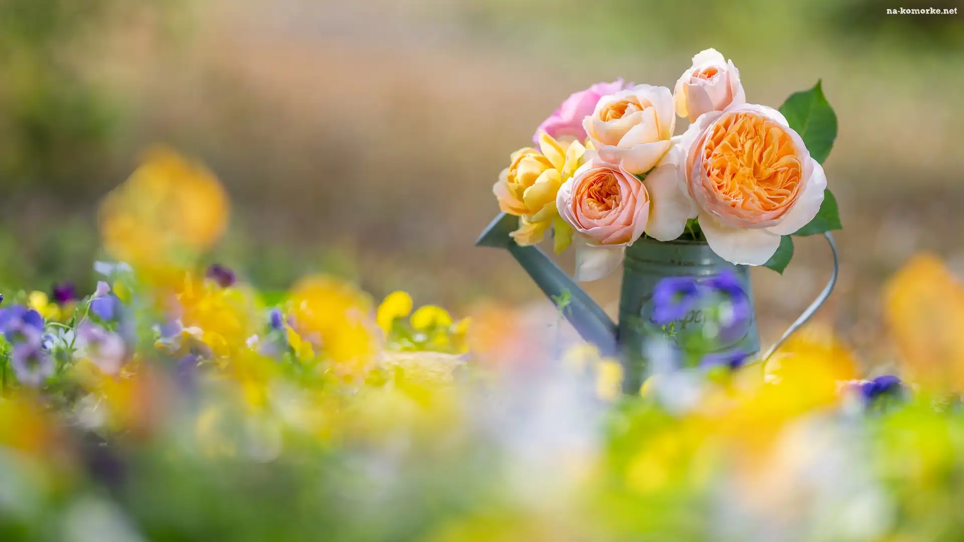 Kwiaty, Konewka, Rozmyte, Róże, Tło na Komórkę