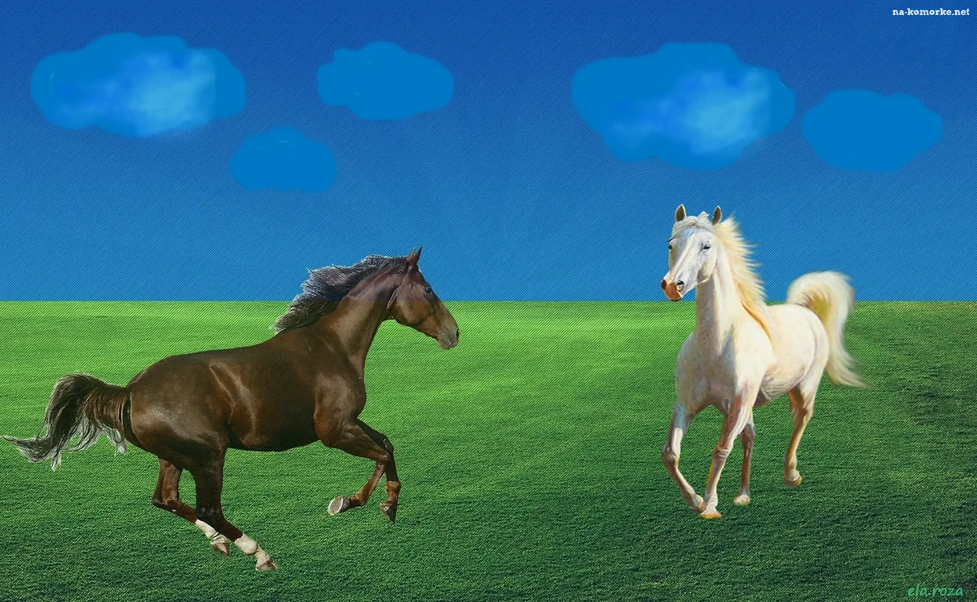 Dwa, Konie, Łąka na Komórkę
