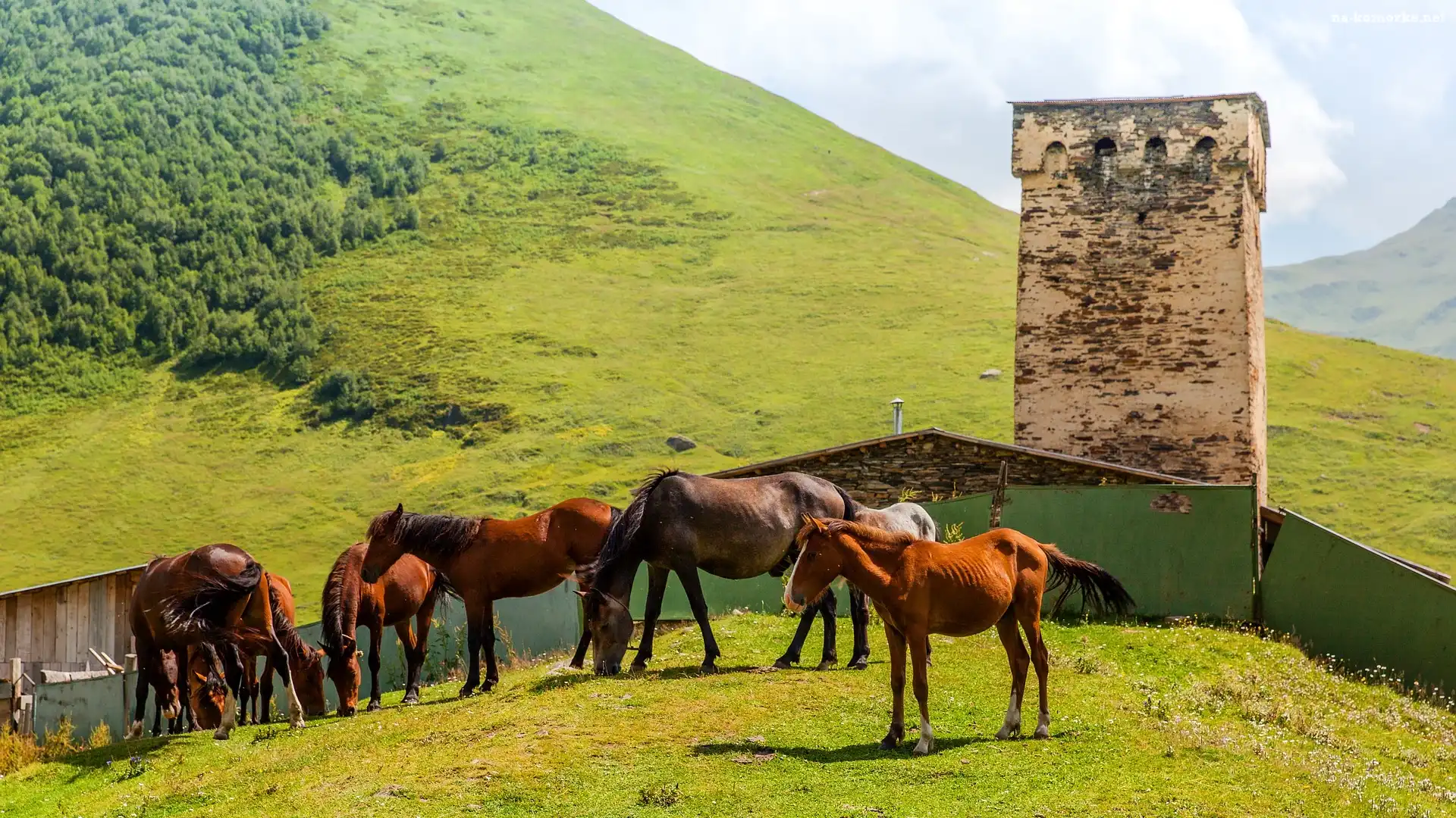 Konie, Wieża, Trawa, Budowla na Komórkę