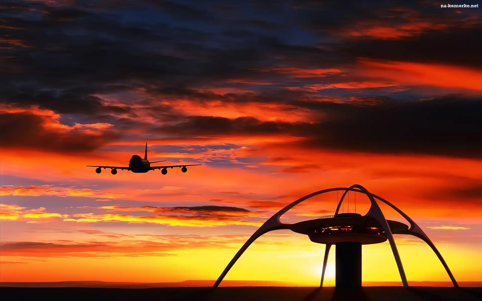 Kontroli, Zachód, Lądujący, Samolot, Wieża na Komórkę