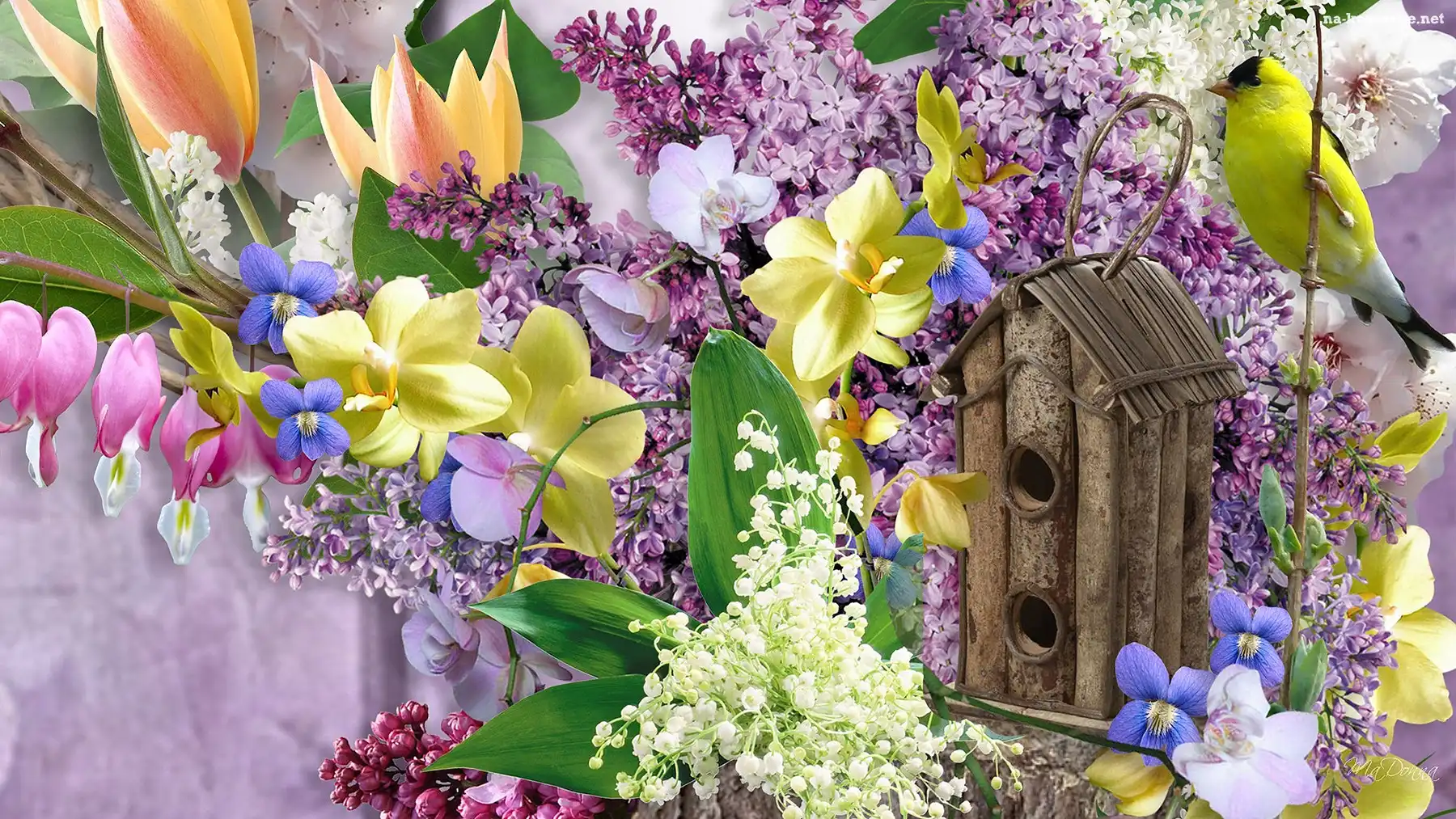 Budka, Czyżyk, Storczyki, Karmnik, Bez, Czyż, Tulipany, Kwiaty, Konwalie na Komórkę