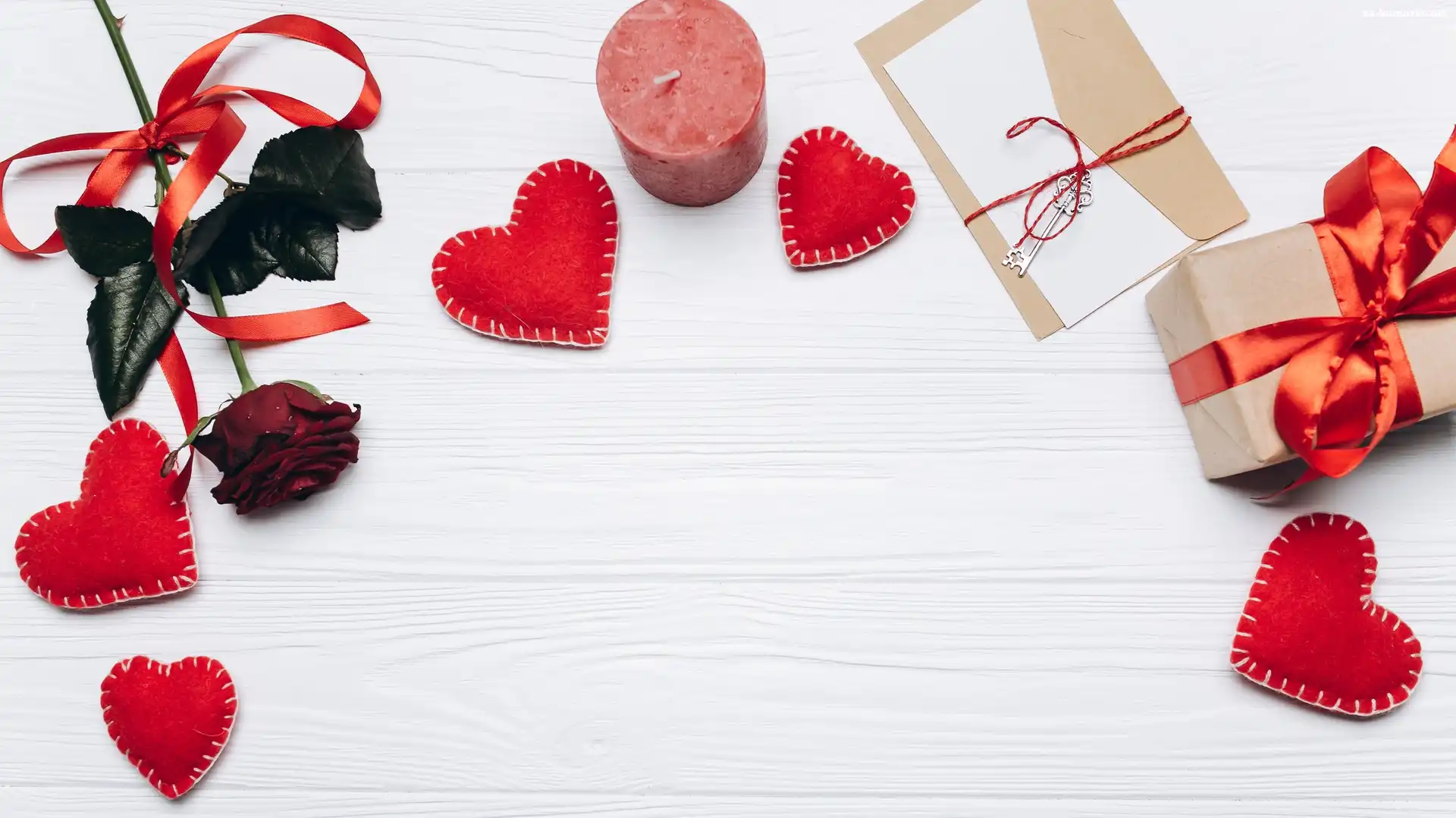 Walentynki, Koperta, Deski, Serduszka, Róża, Świeca, Prezent na Komórkę