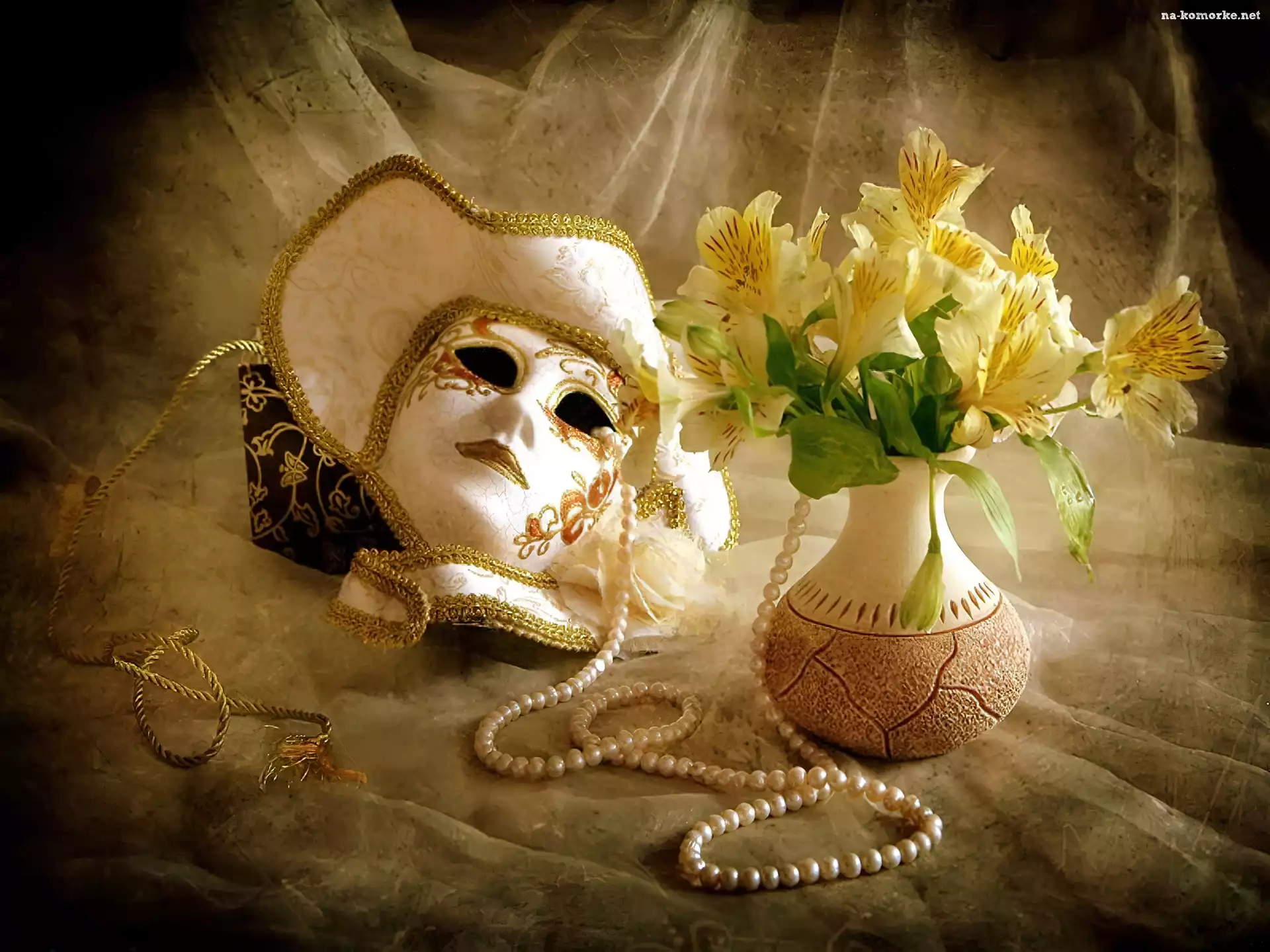 Bukiet kwiatów, Kapelusz, Wazon, Maska, Korale na Komórkę