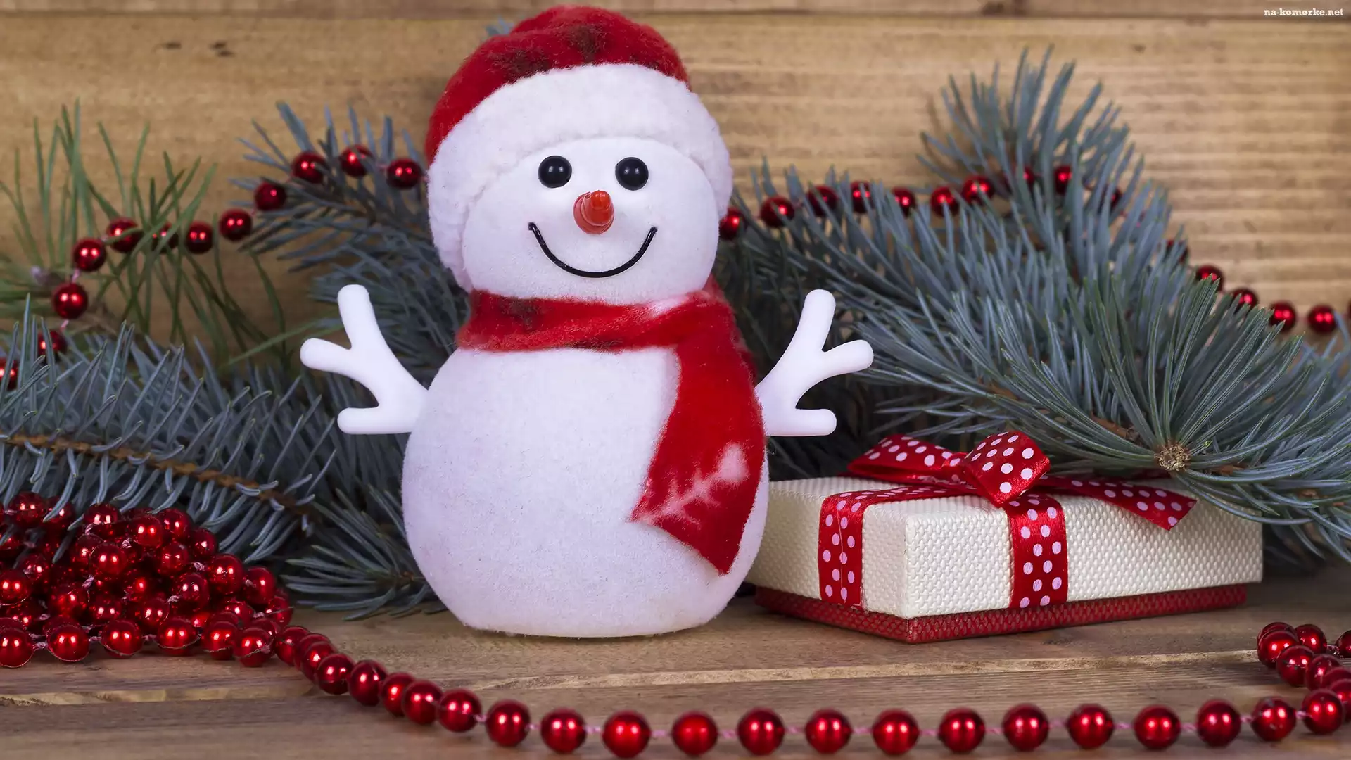 Kompozycja, Koraliki, Czerwone, Świąteczna, Bałwanek, Gałązki, Prezent na Komórkę