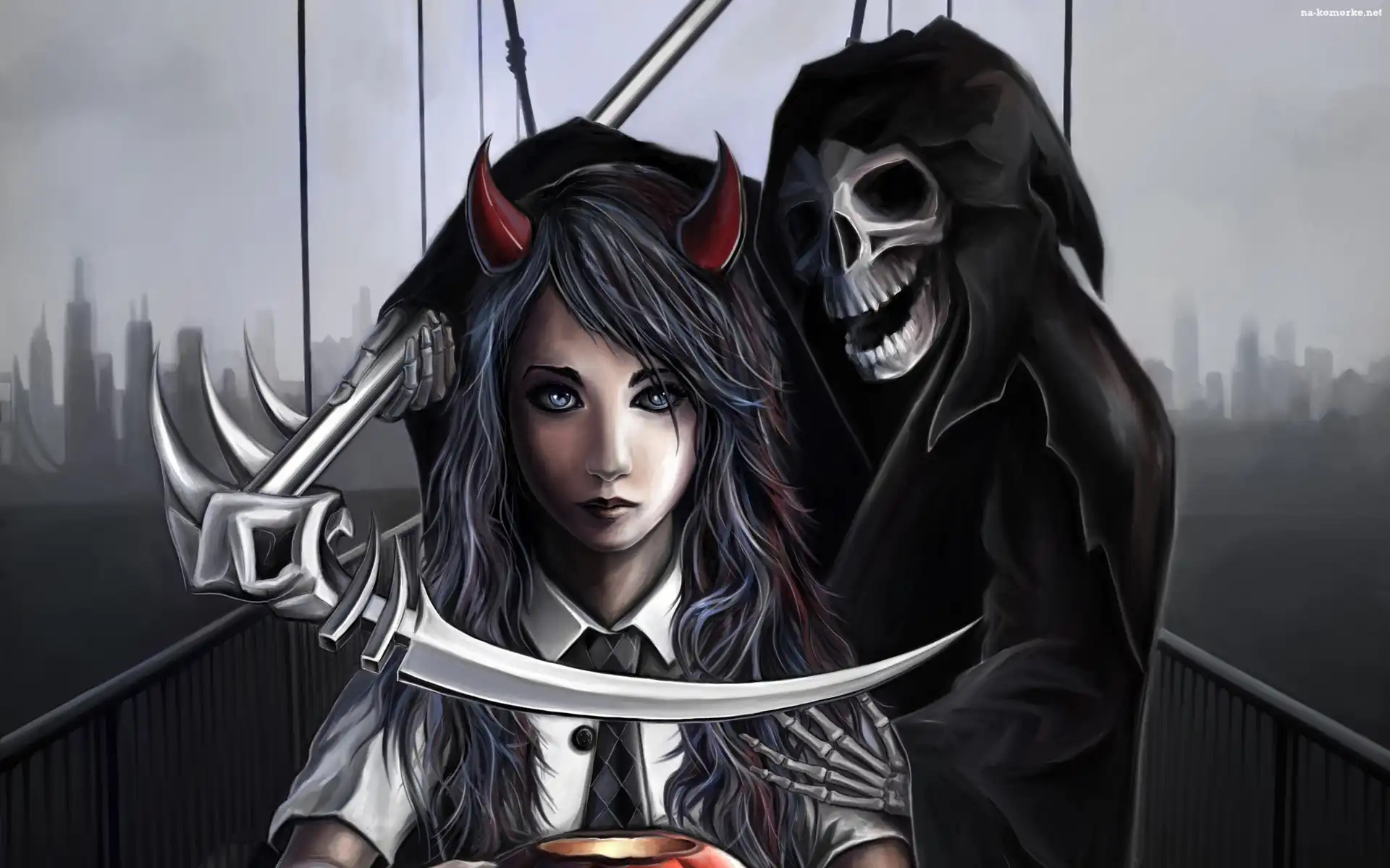 Kosa, Grafika, Kobieta, Diablica, Śmierć na Komórkę