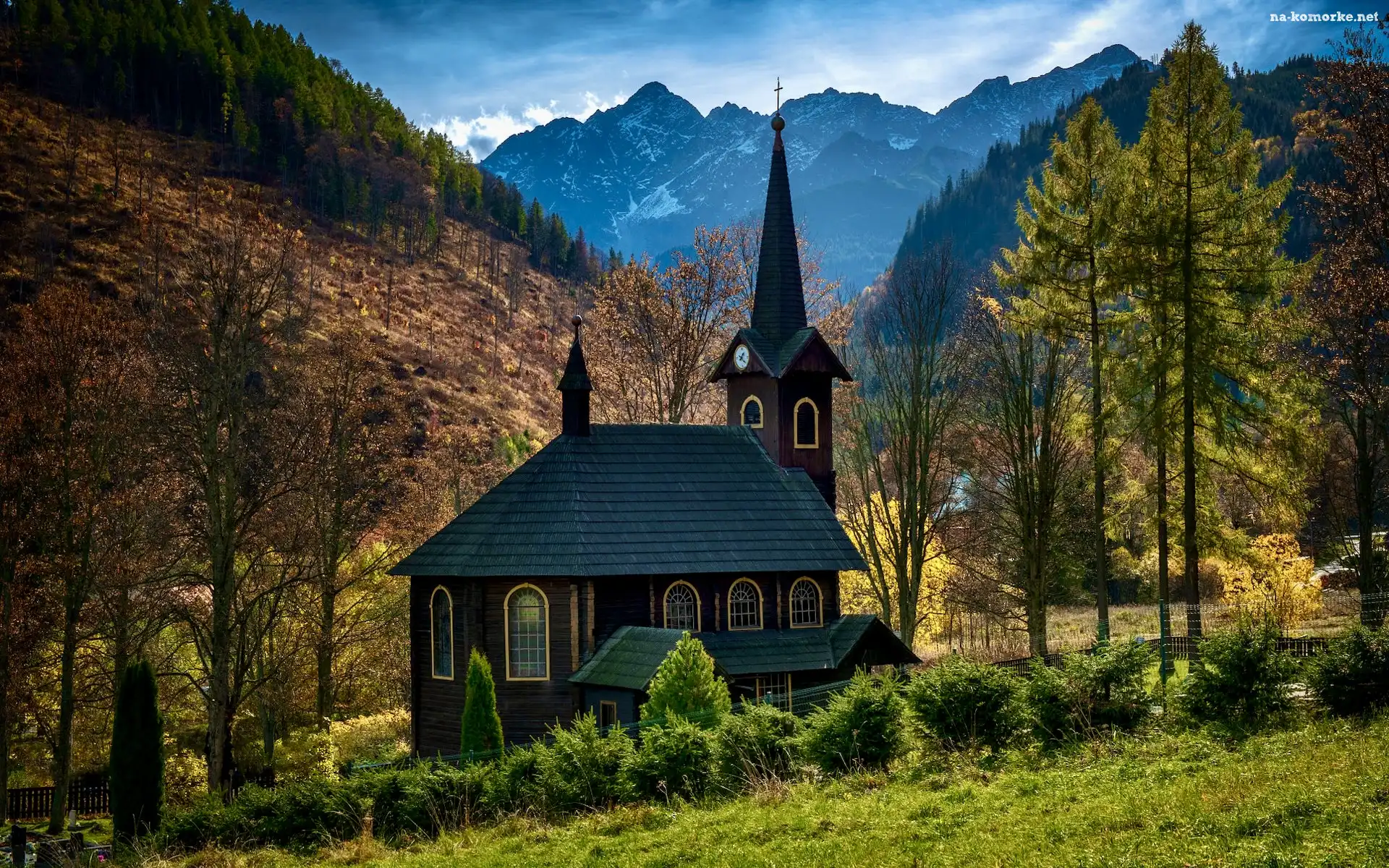Kościół św Anny, Słowacja, Tatry, Drzewa, Góry, Jaworzyna Tatrzańska na Komórkę