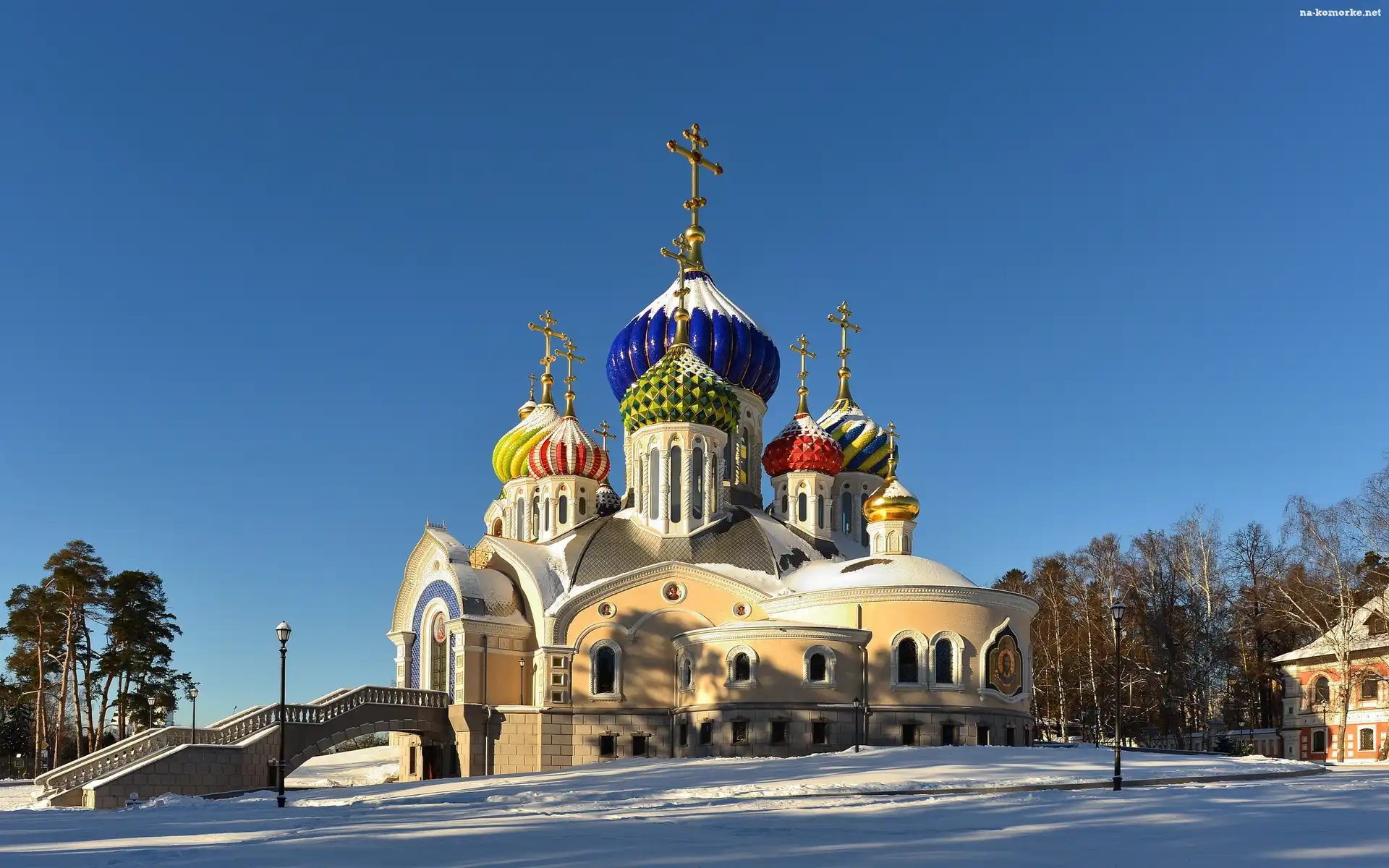 Cerkiew, Drzewa, Kopuła, Śnieg na Komórkę