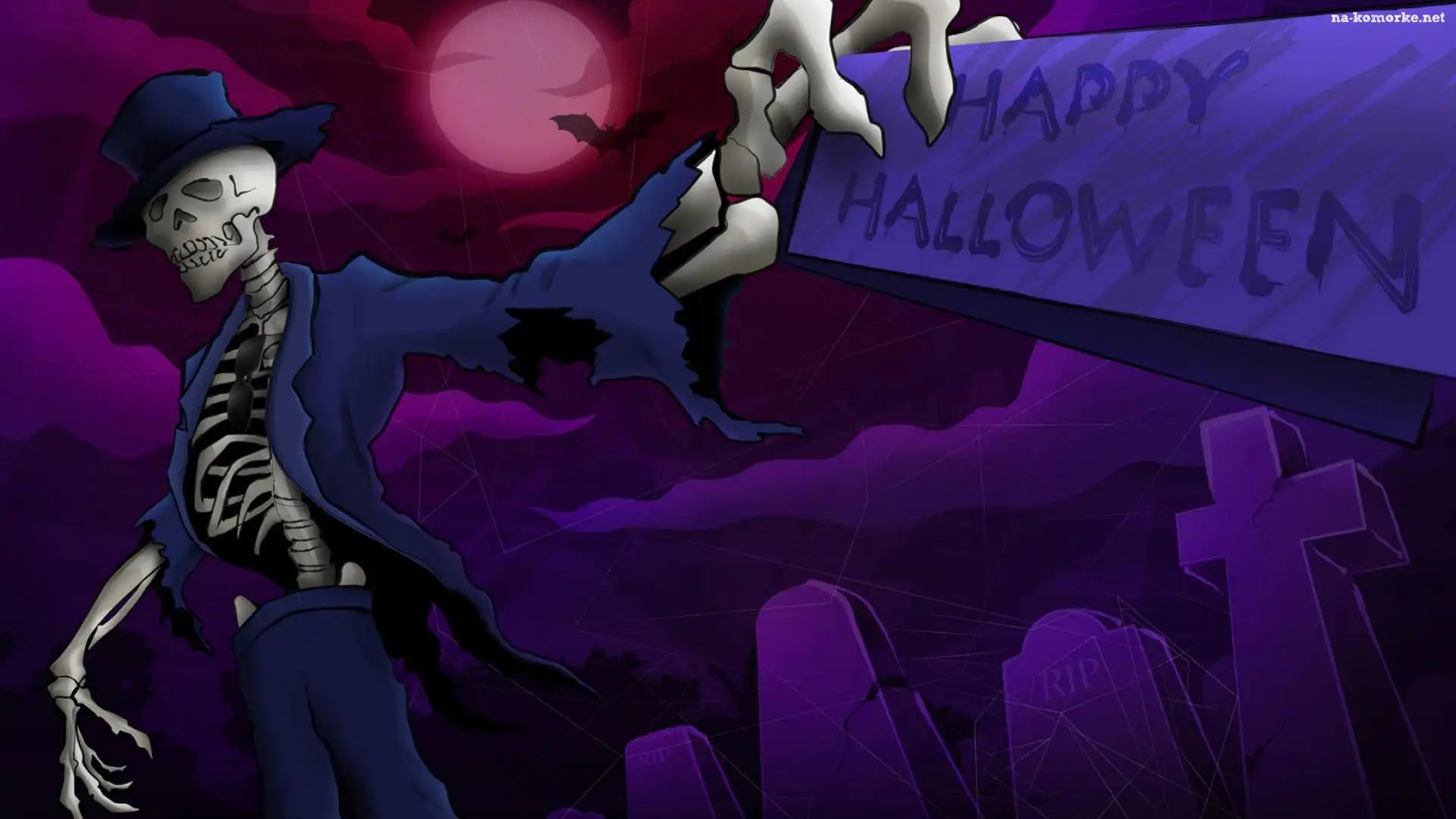 Halloween, czaszki Halloween, dynia , baba jaga Halloween, duszki wśród dyni Halloween, trupy Halloween, księżyc Halloween, duchy Halloween, świecący las Halloween, wilk Czarownica, Wampir Halloween, dynie Halloween, grób Halloween, Miotle, Czarownica, Na Halloween, dom, drzewa Halloween, dynie