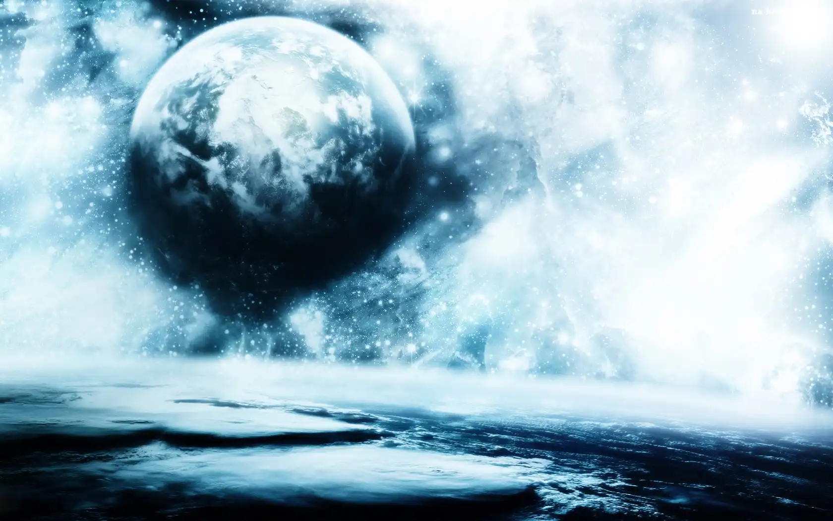 Kosmos, Ziemia, Zderzenie Planety, Saturn Columbia Księżyc, Noc, Chata Start Rakiety Planeta, Morze, Saturn, Palmy Klony, Ziemi Wschód, Marsie, Słońca, Na Gwiazdy, Wir Planeta Planeta Kosmos chmury, satelita Księżyc, Chmury, Horyzont