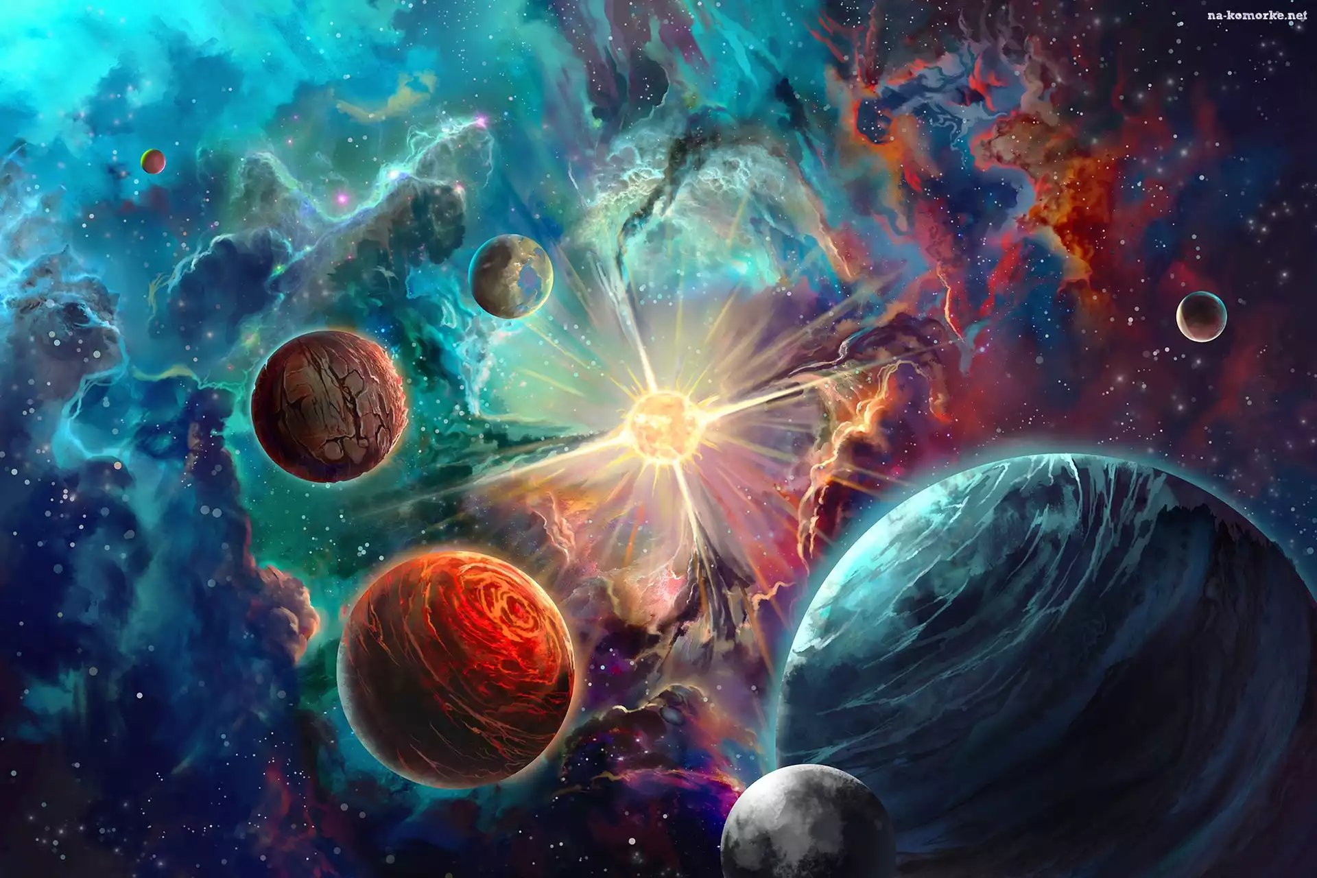 Kosmos, Grafika 2D, Planety, Gwiazdy na Komórkę