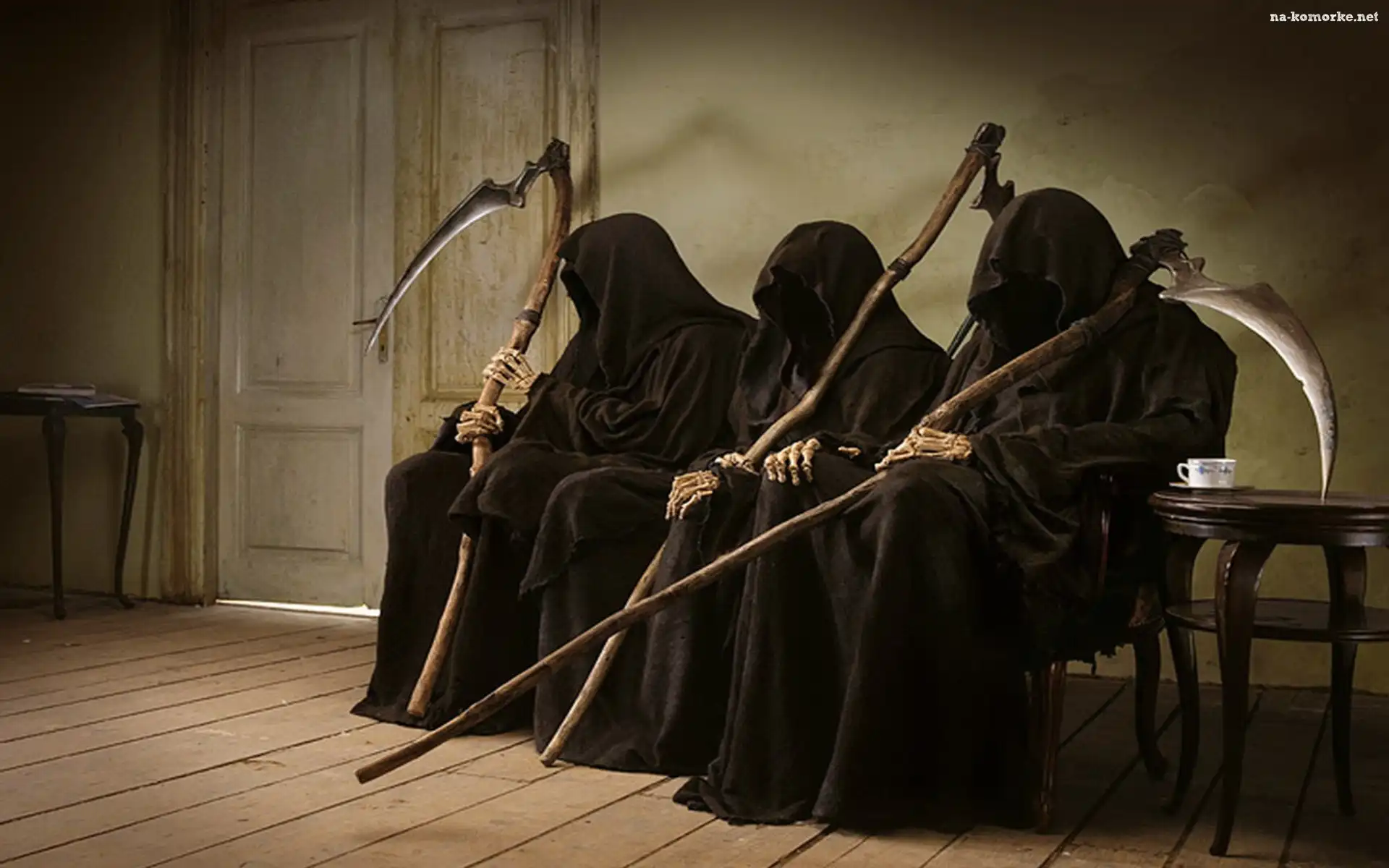 Horror mroczne, Trupia Czaszka Chochoły, Strach, Halloween Latające, Demony morda Śmierć, Noc, Kosa Usta, Dziewczyna, Czerwone, Oczy, Zaklejone Kobieta, Mrok Czaszki, Garnitury Dziewczyna, Ręce, Krew Windows, Zombie Kobieta, Księżyc, Ptaki, Skrzydła Kobieta, Upiór, Kruk Kobieta, Krew, Wampir Stary, Mroczny, Dworek
