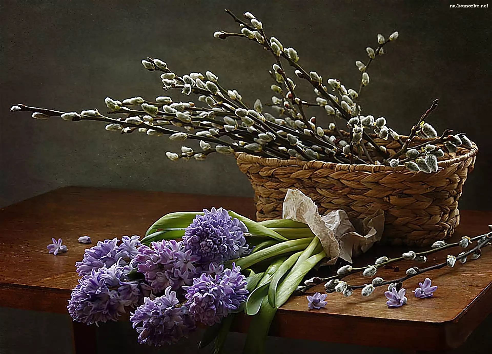 Kosz, Kwiaty, Bazie, Stół na Komórkę