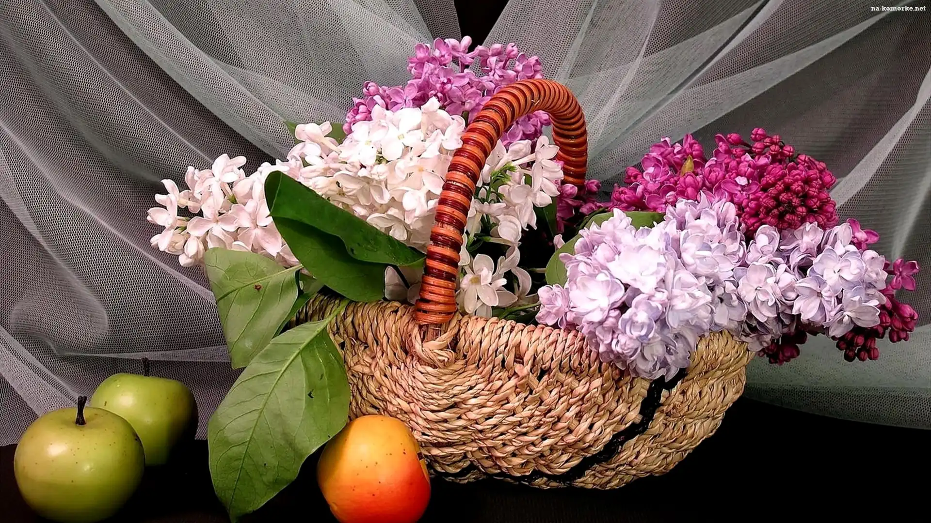 Kosz, Jabłka, Bez, Dekoracja na Komórkę