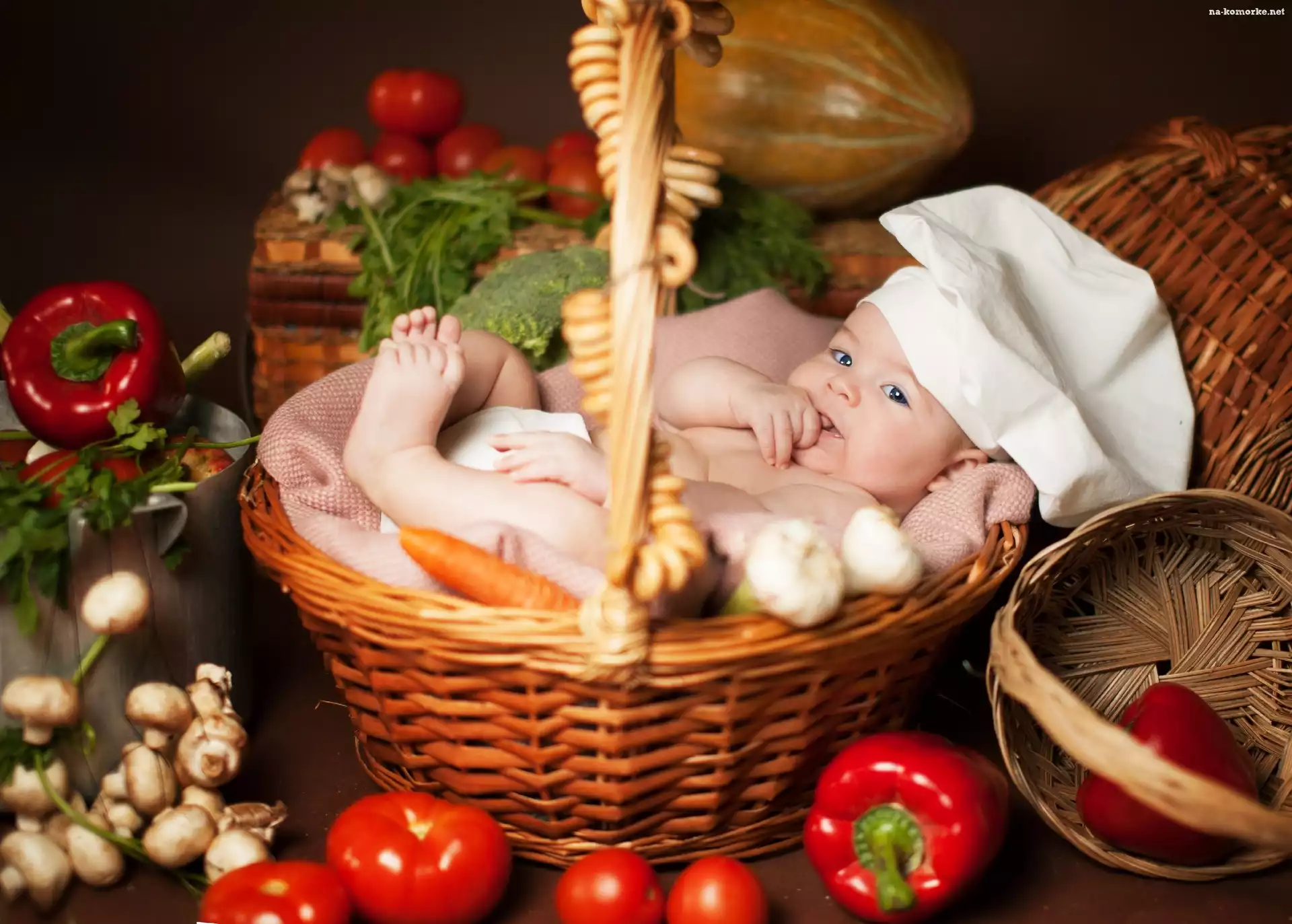 Dziecko, Kosz, Warzywa na Komórkę