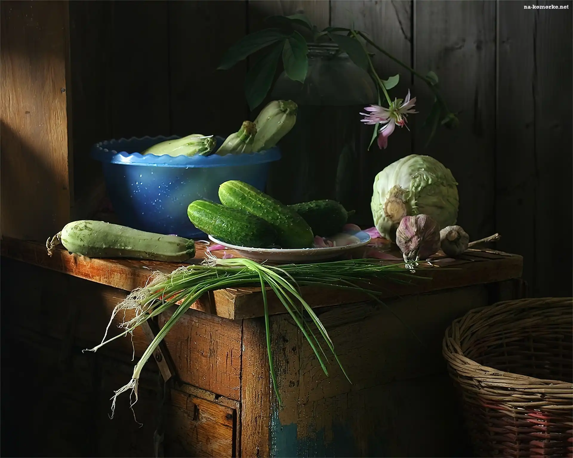 Kosz, Kapusta, Ogórki, Szczypiorek, Cukinia na Komórkę