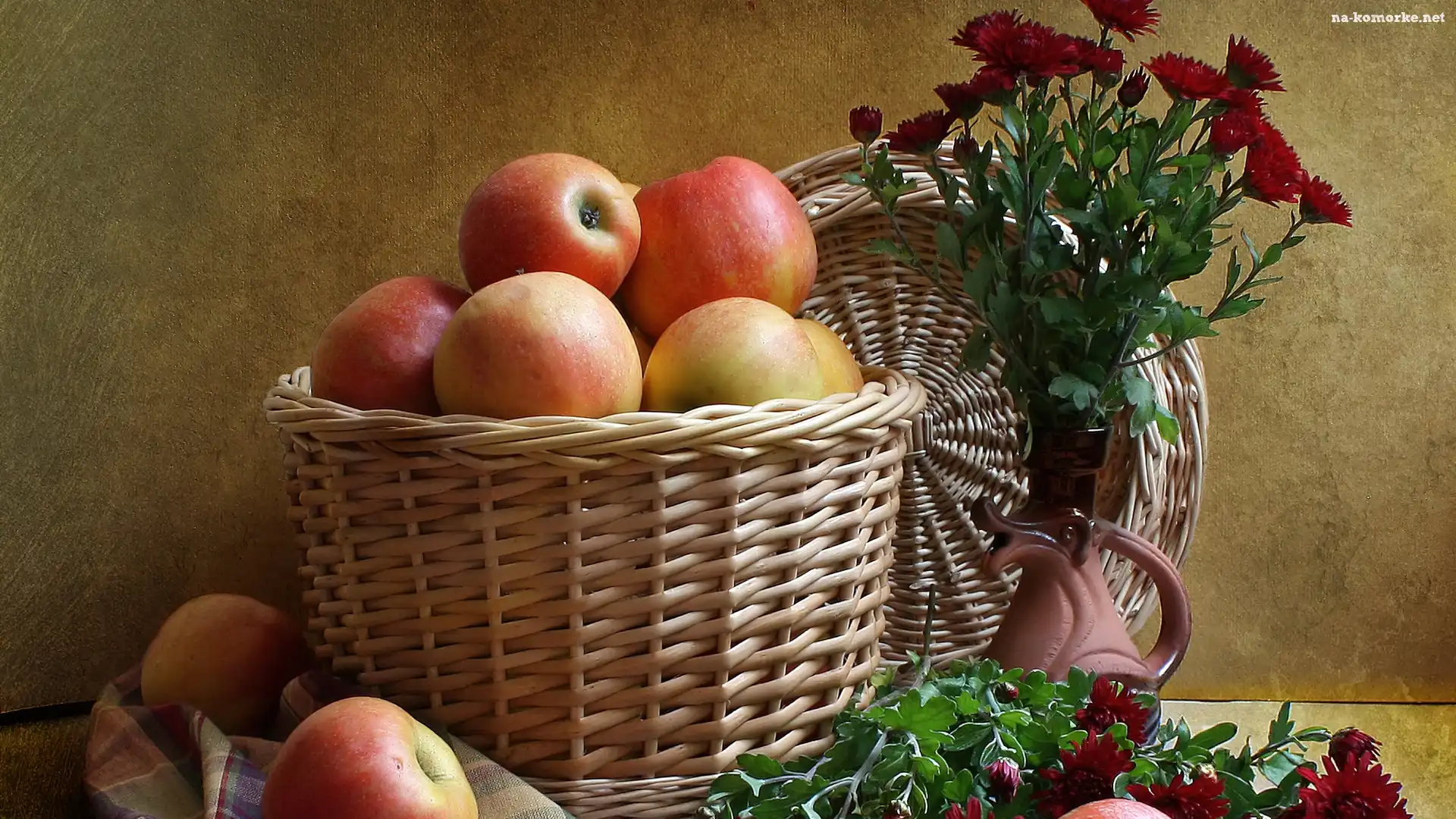 Kosz, Kwiaty, Wiklinowy, Jabłka na Komórkę