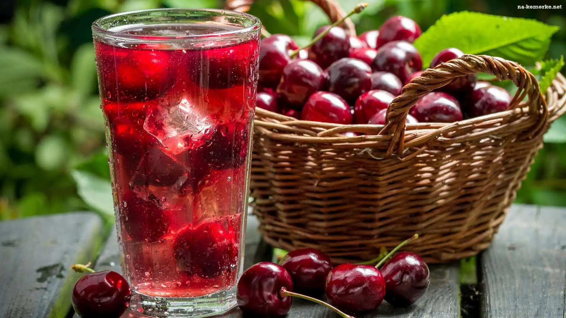 Szklanka, Kosz, Wiśnie, Deski, Woda, Lód, Napój, Wiśniowy na Komórkę