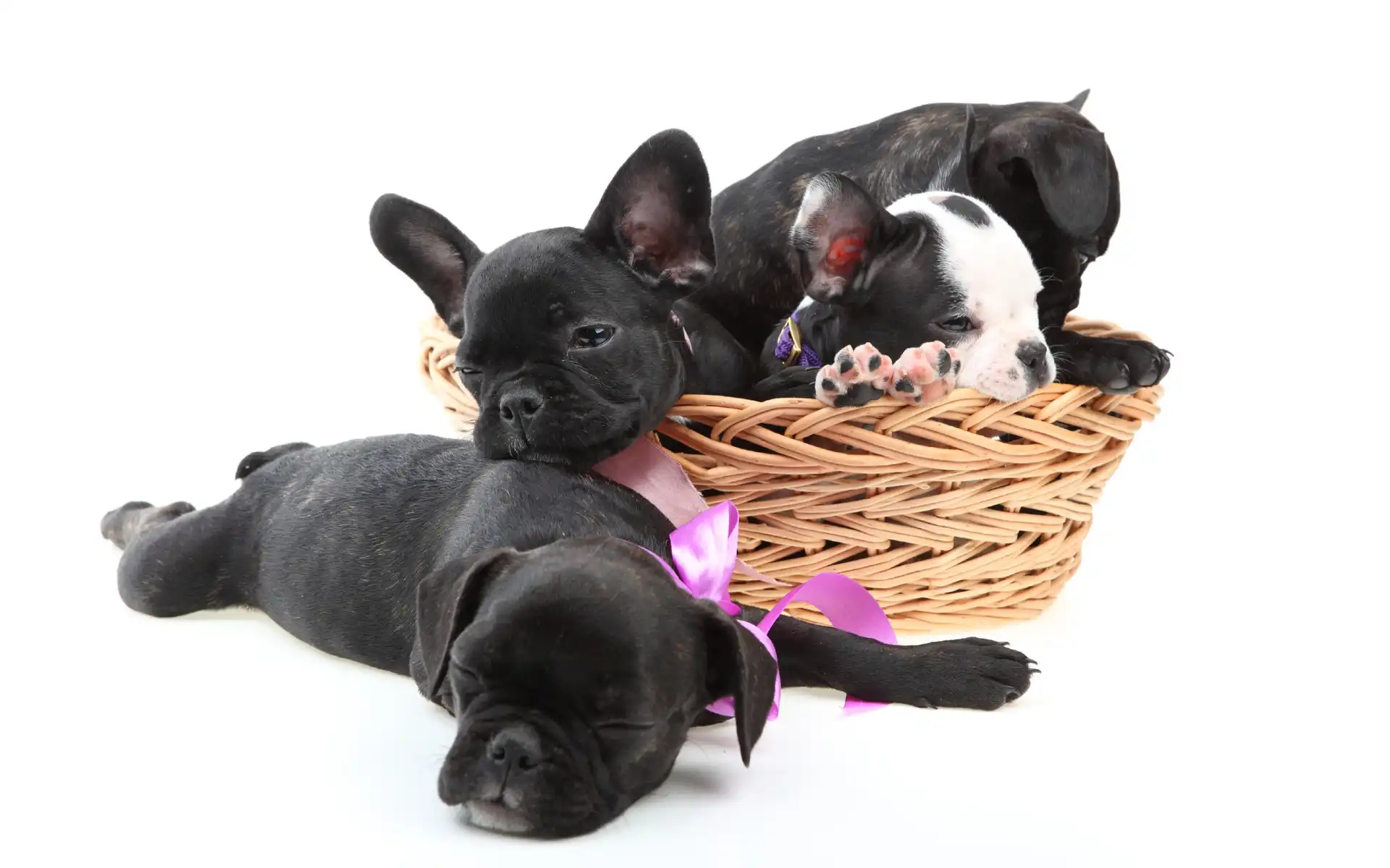 Trzy, Koszyczek, Szczeniaki, Buldogi francuskie na Komórkę