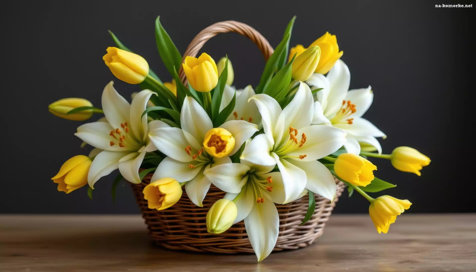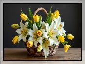 Tulipany, Kwiaty, Żółte, Koszyk, Lilie, Białe na Komórkę