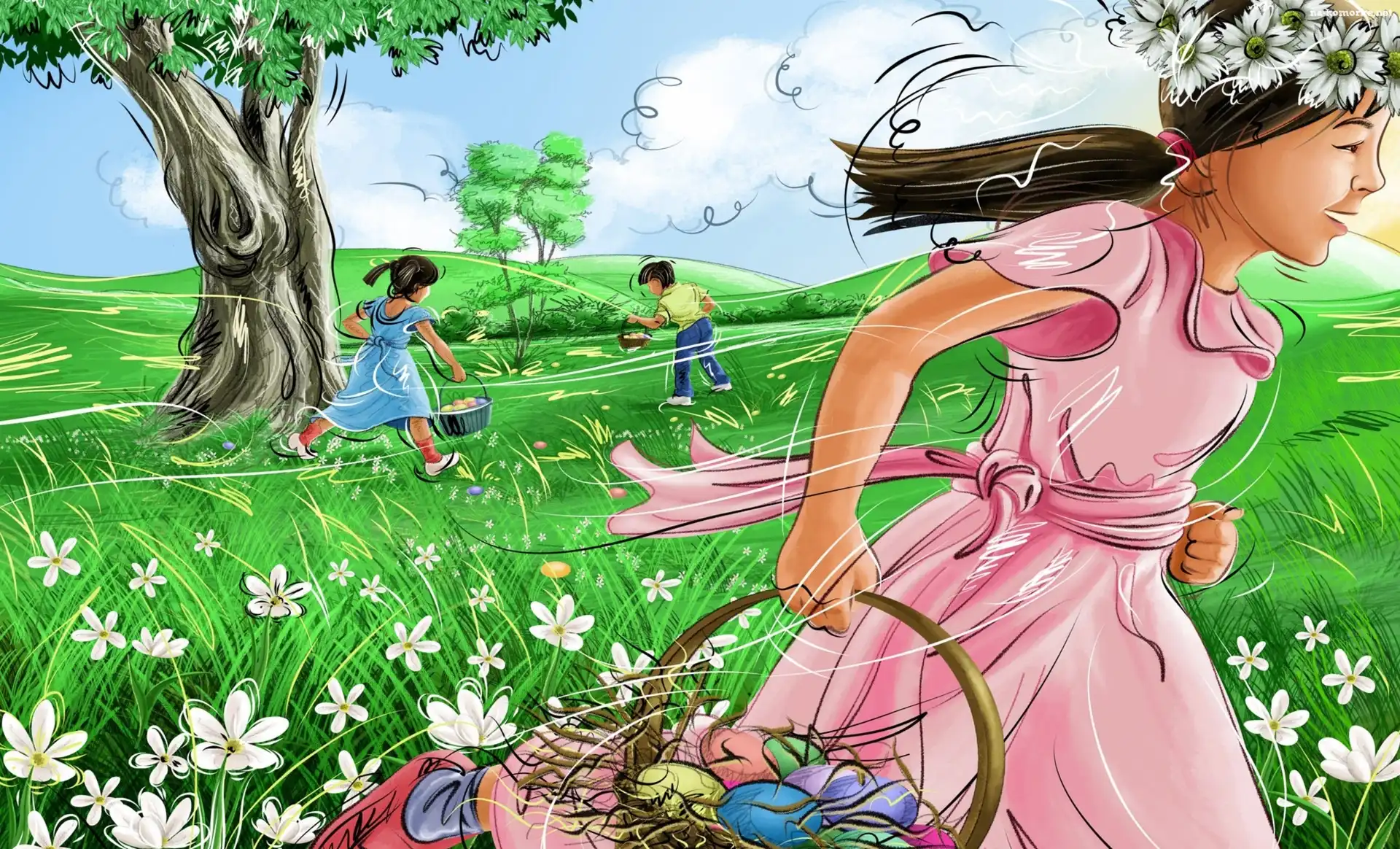 Dziewczynki, Koszyk, Pisanki na Komórkę