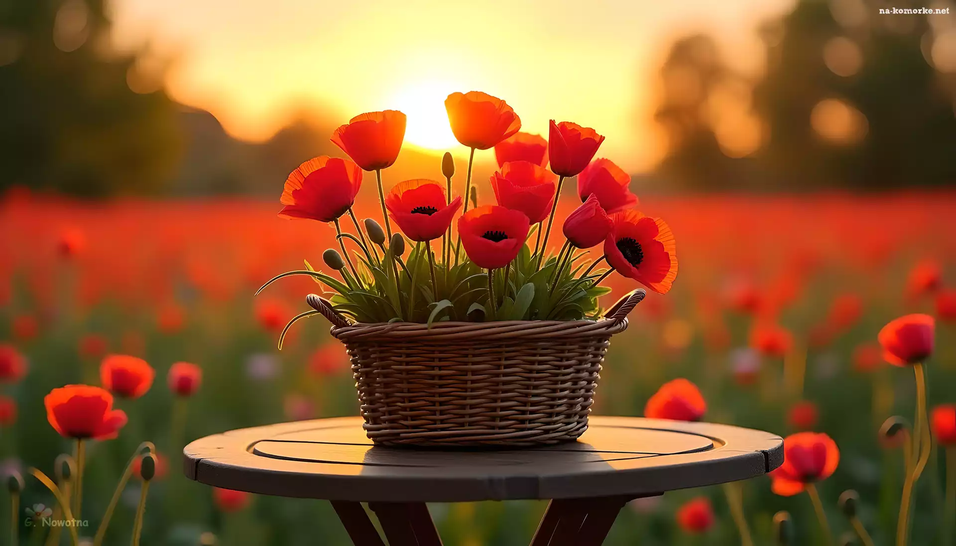 Czerwone, Koszyk, Grafika, Maki, Kwiaty na Komórkę
