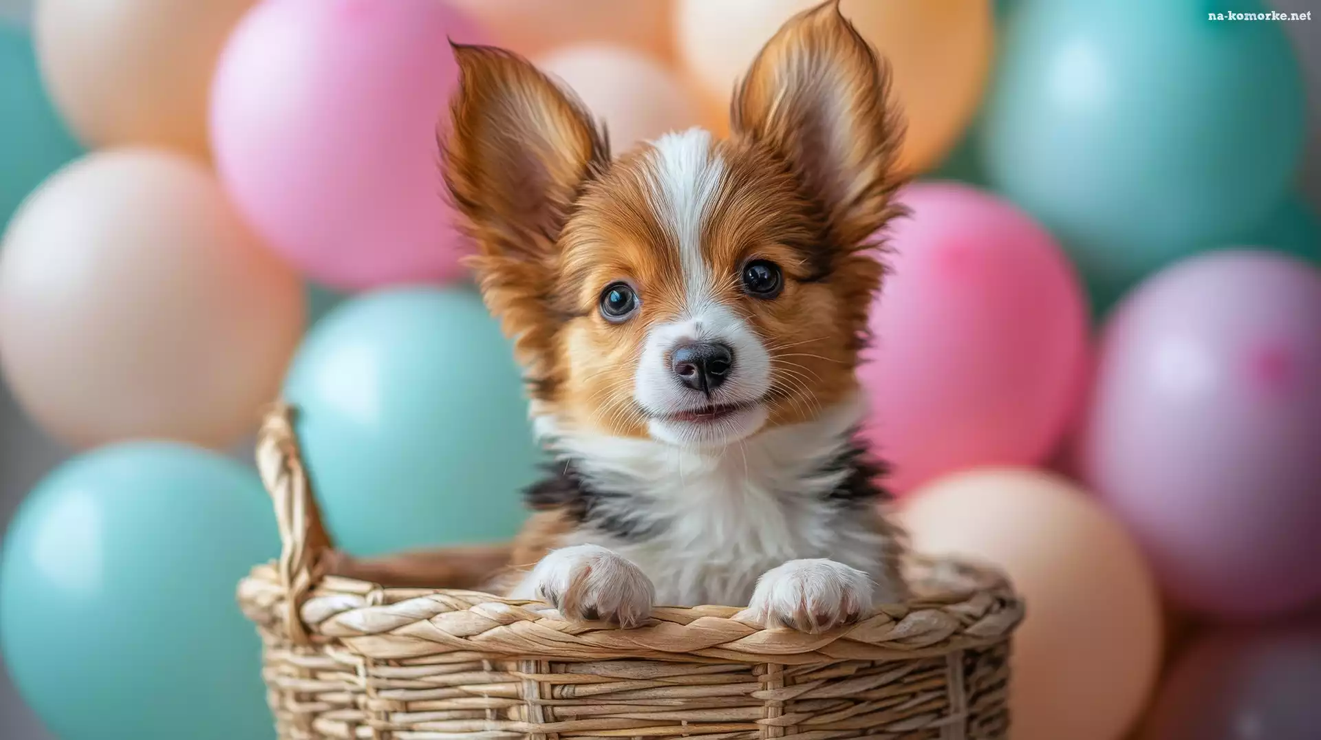 Pies, Koszyk, Kolorowe, Szczeniak, Balony na Komórkę