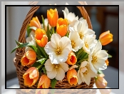 Kamelie, Wiklinowy, Kwiaty, Koszyk, Tulipany, Kremowe, Pomarańczowe na Komórkę